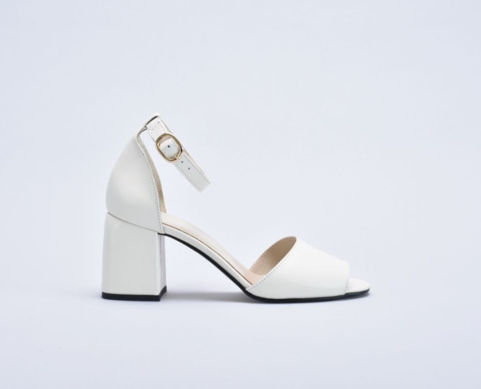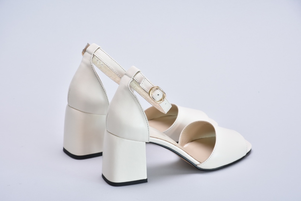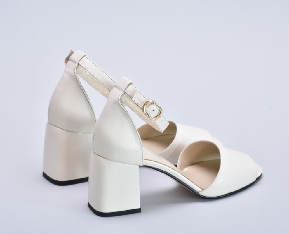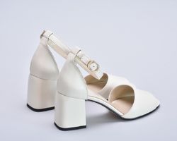 Босоніжки молочного кольору шкіряні на підборах 7 см
