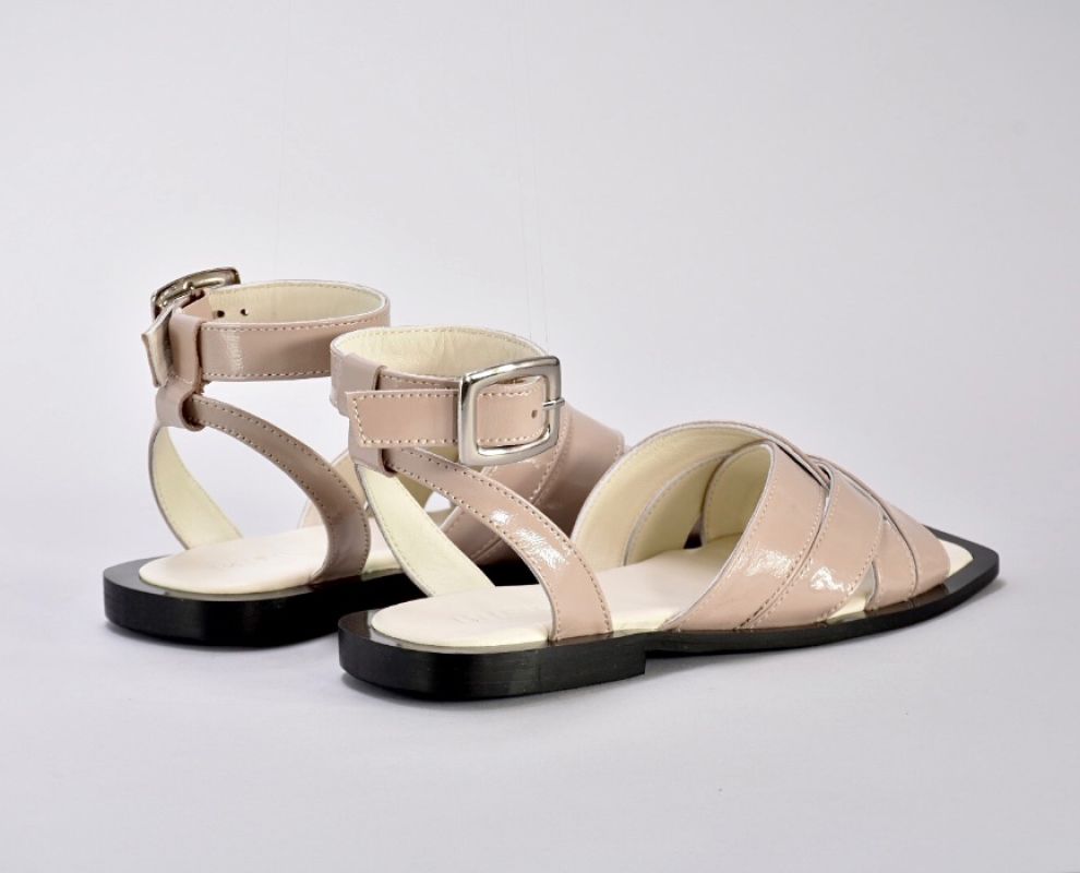 Босоніжки виготовлені з мякої натуральної шкіри з перехресними ремінцями ,які елегантно обрамляють ніжку та шкіряним ремішком з пряжкою навколо щиколотки.