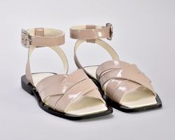 Босоніжки з натуральної шкіри від українских дизайнерів inifil виконані на зручній підошві на низькому ходу з квадратним мисом,ідеальні для щоденного носіння та відпустки.