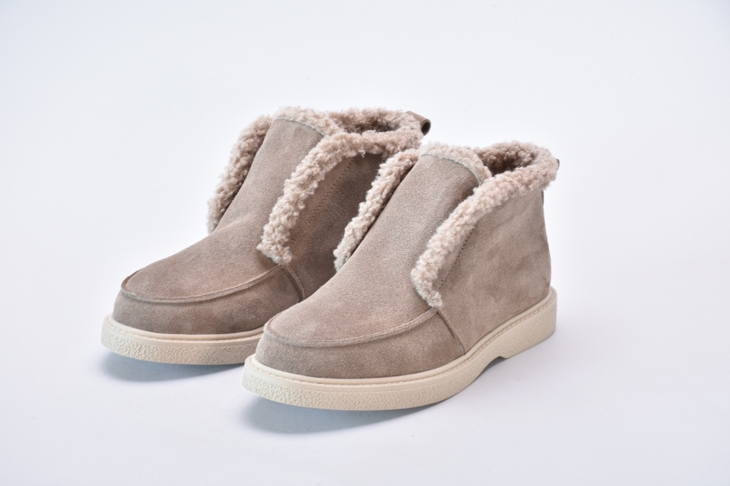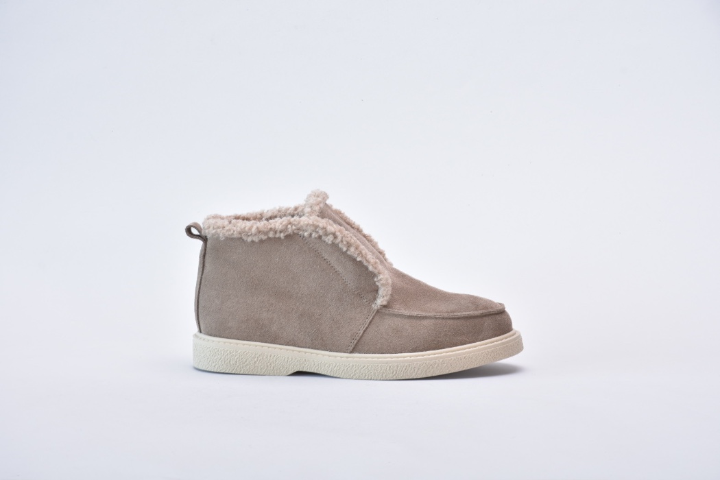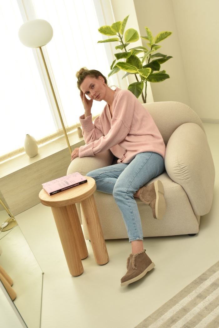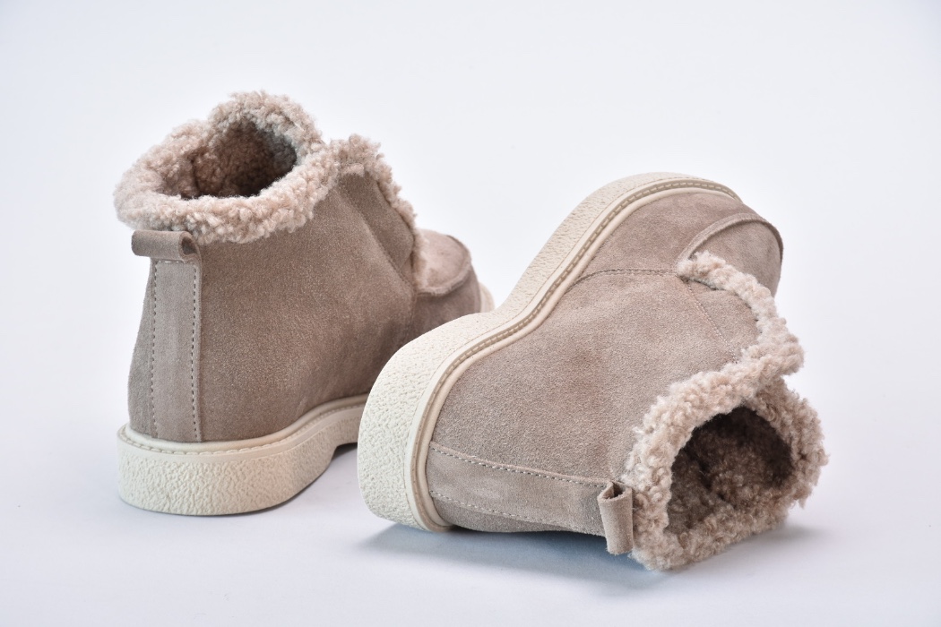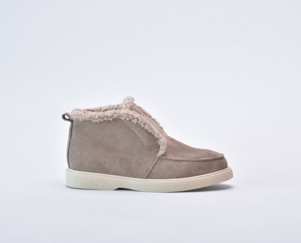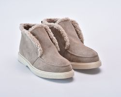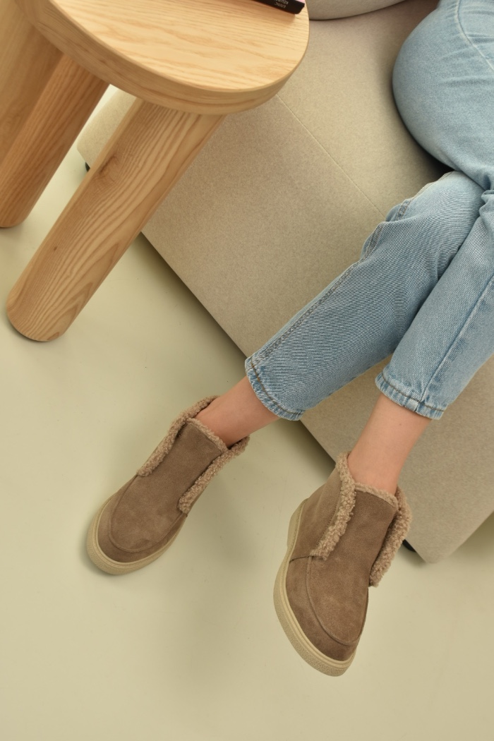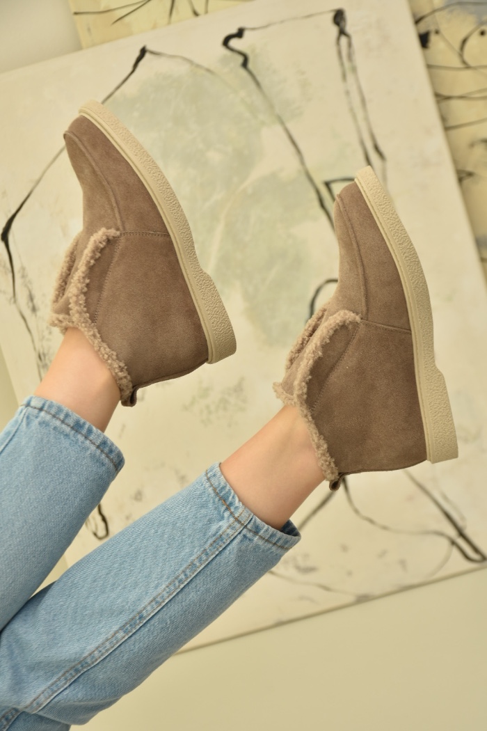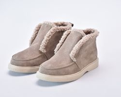 Ця пара дозволить вам експериментувати та створювати різноманітні образи — від повсякденних до ошатних.Виконані з натуральної якісної замші бежевого кольору ,утеплені і декоровані штучним хутром.