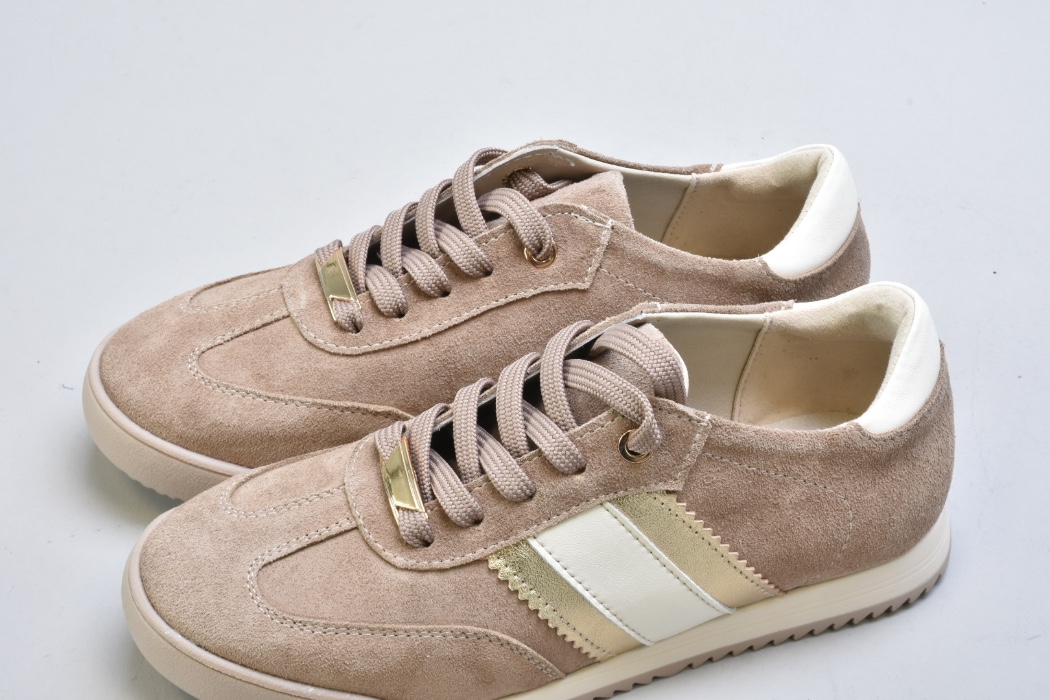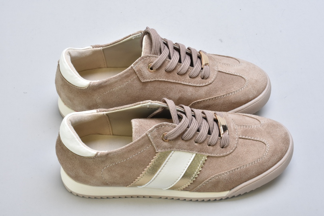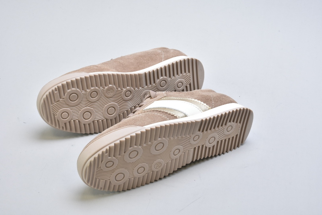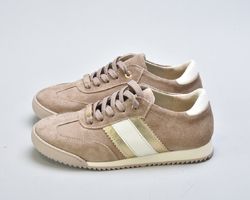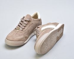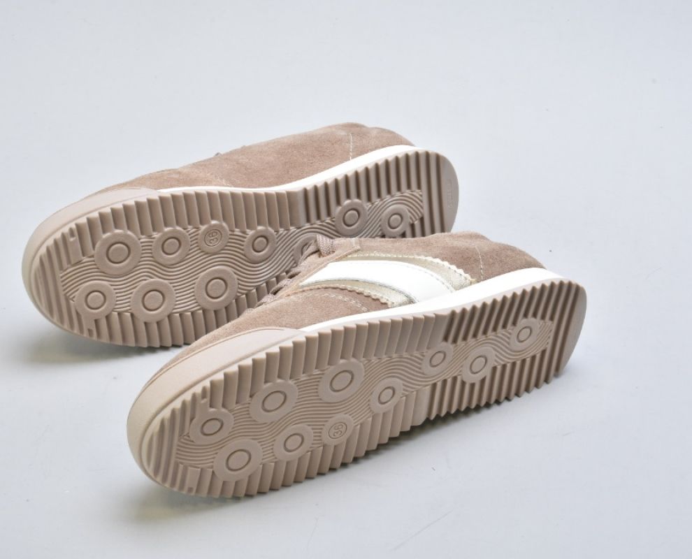 Верх виконаний із натуральної замші вищого сорту — м’якої, глибокої, з благородною матовою текстурою. Теплий бежевий відтінок створює відчуття спокійної розкоші та легко інтегрується у гардероб.