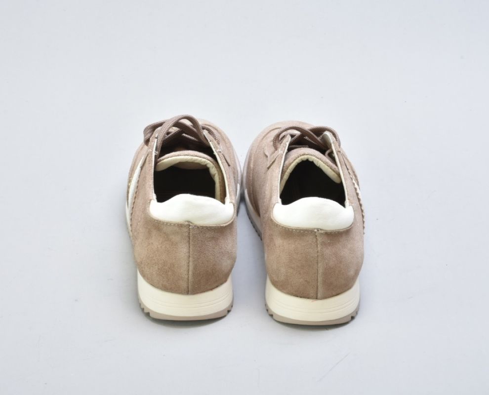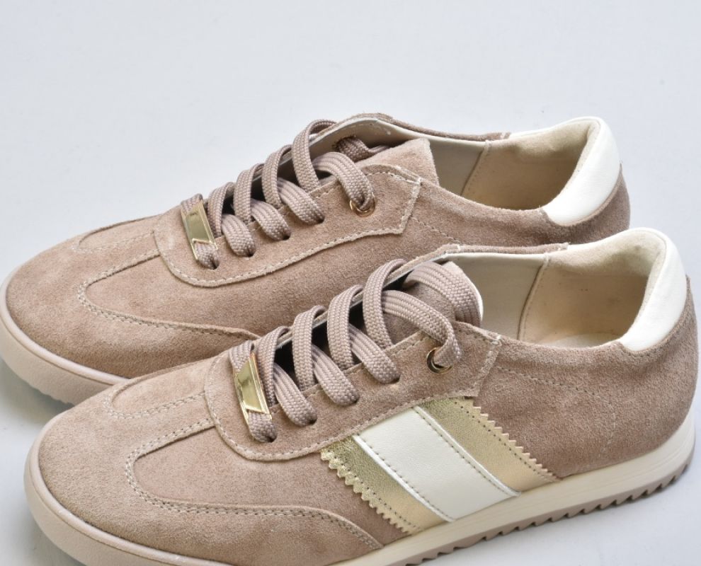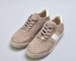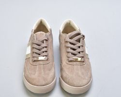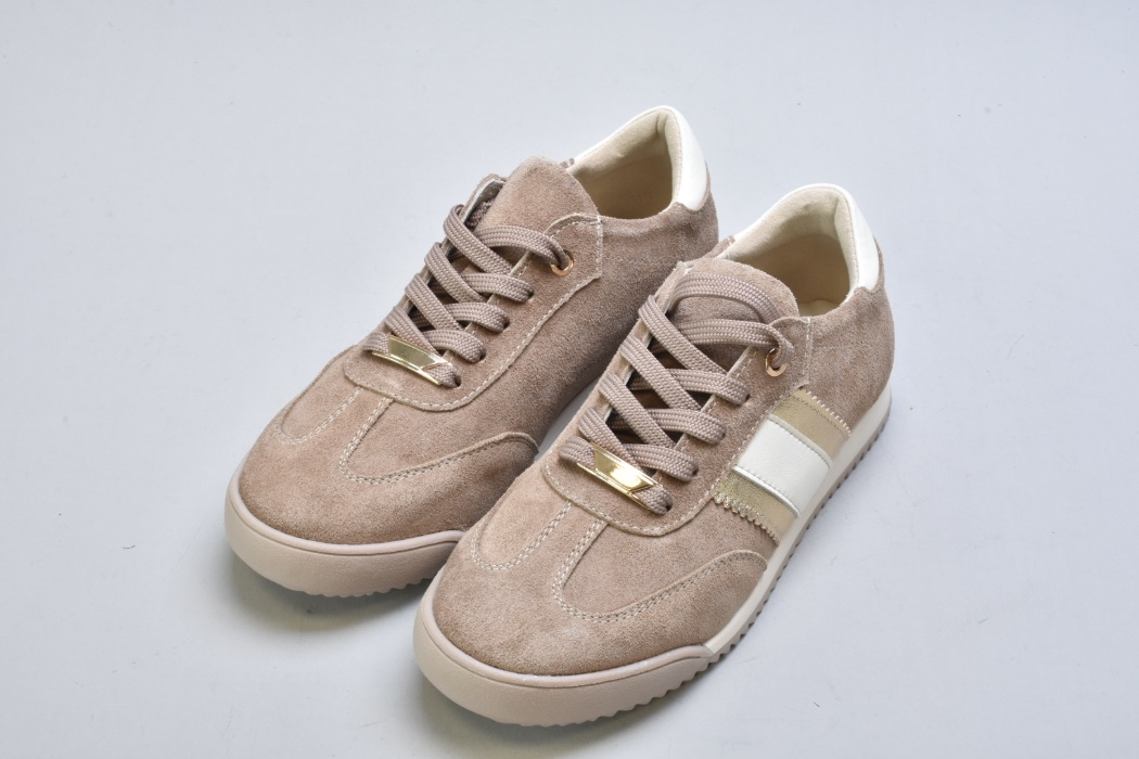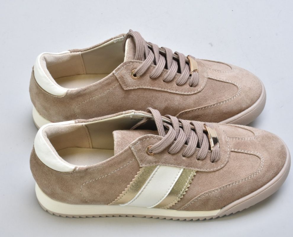 Верх виконаний із натуральної замші вищого сорту — м’якої, глибокої, з благородною матовою текстурою. Теплий бежевий відтінок створює відчуття спокійної розкоші та легко інтегрується у гардероб.