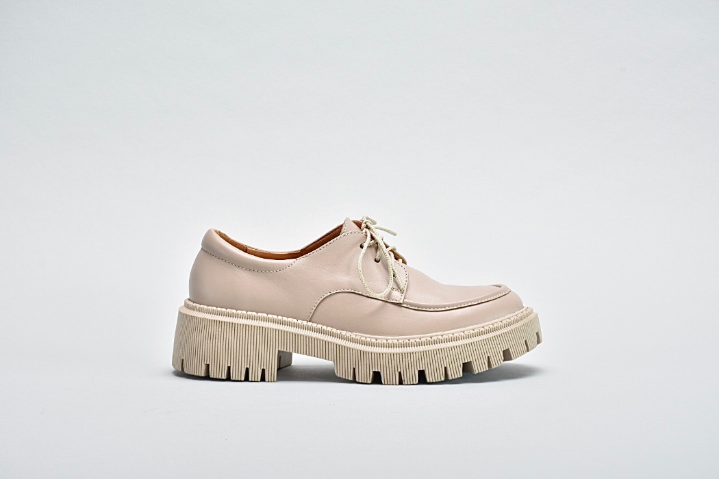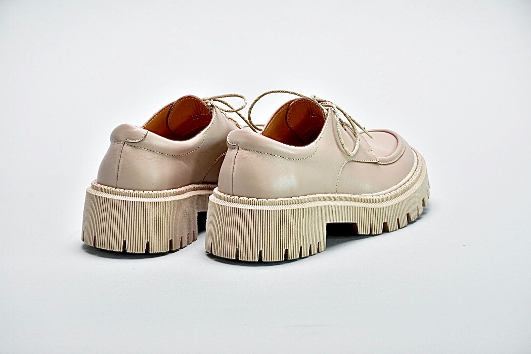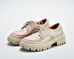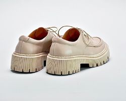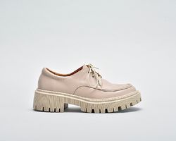 Бежеві шкіряні туфлі на шнурівці маломірять.Для того ,щоб Вам зручно було підібрати модель взуття,ми залишаємо таблицю розмірів для цієї пари.