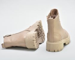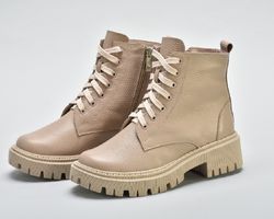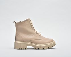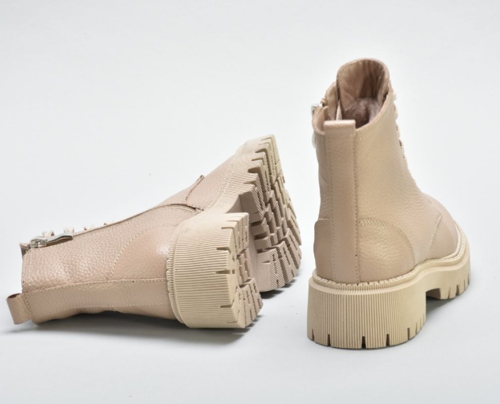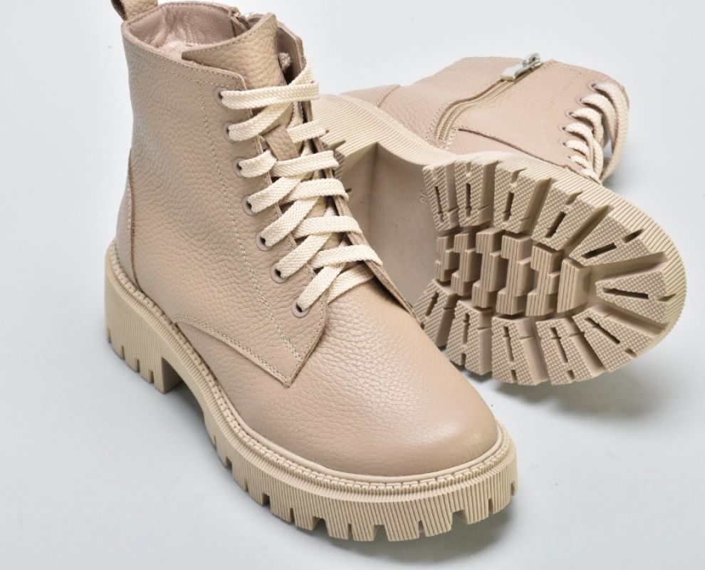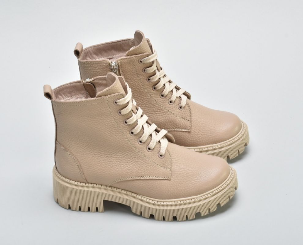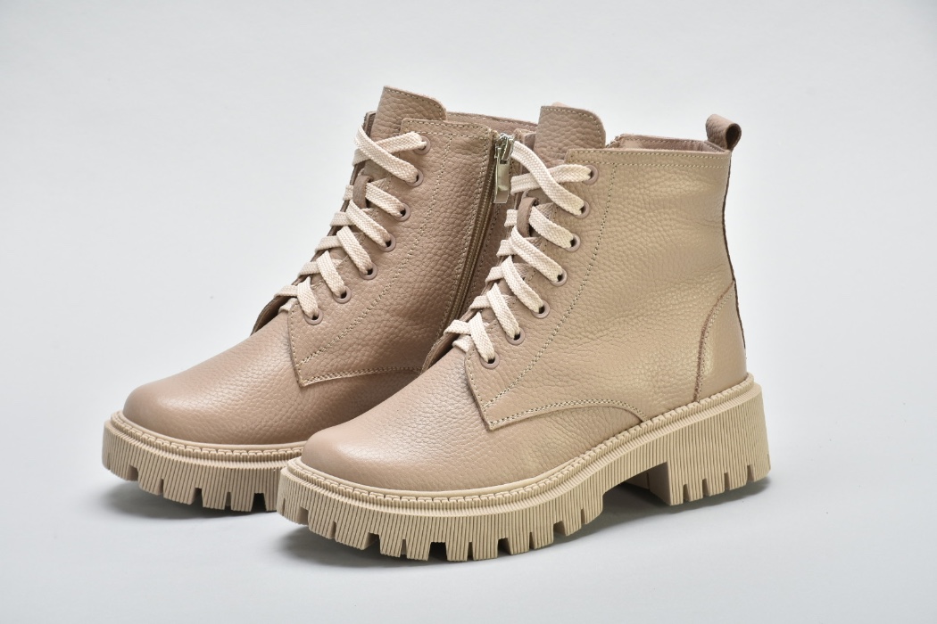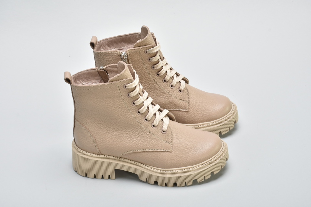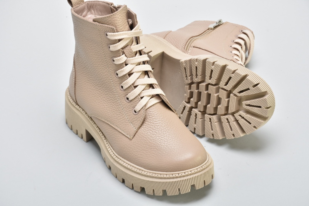 Мають світлу підошву,блискавку збоку ,шнурівку в тон .Модель черевиків повномірна.