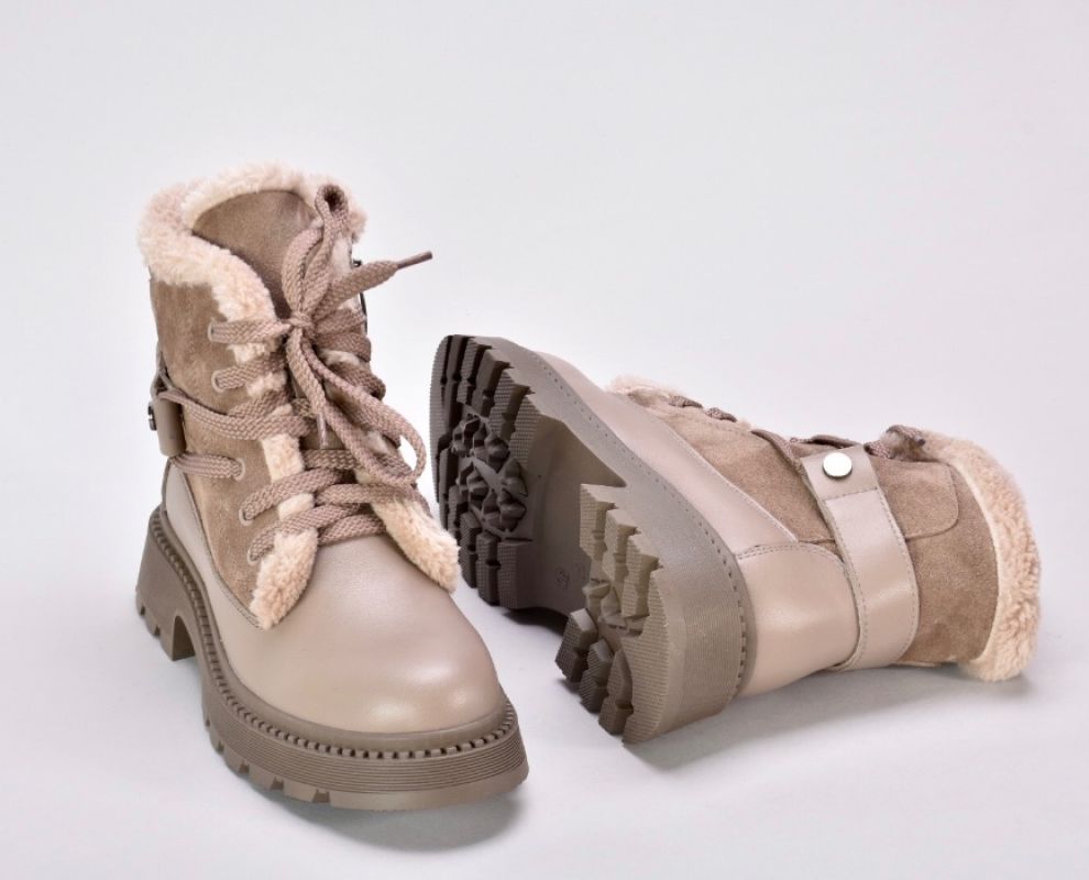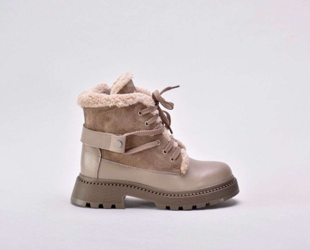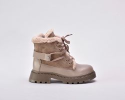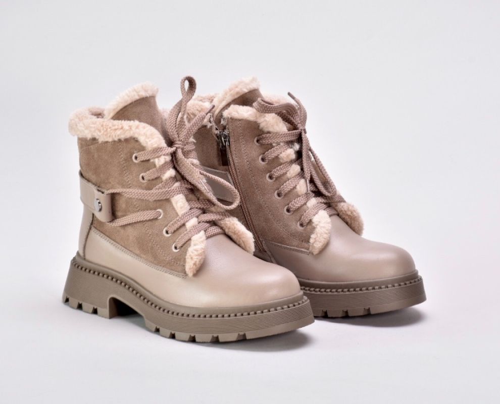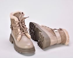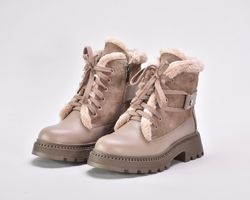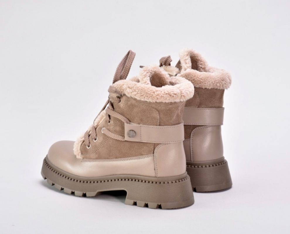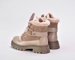 Зимові черевики бежеві з натуральної шкіри та замші