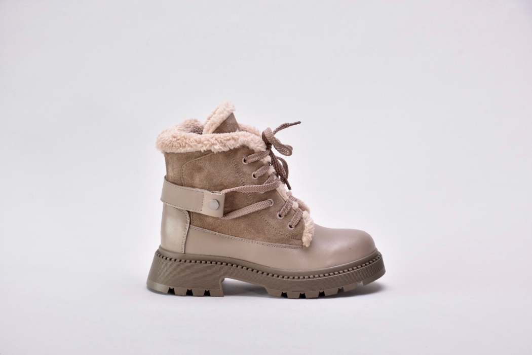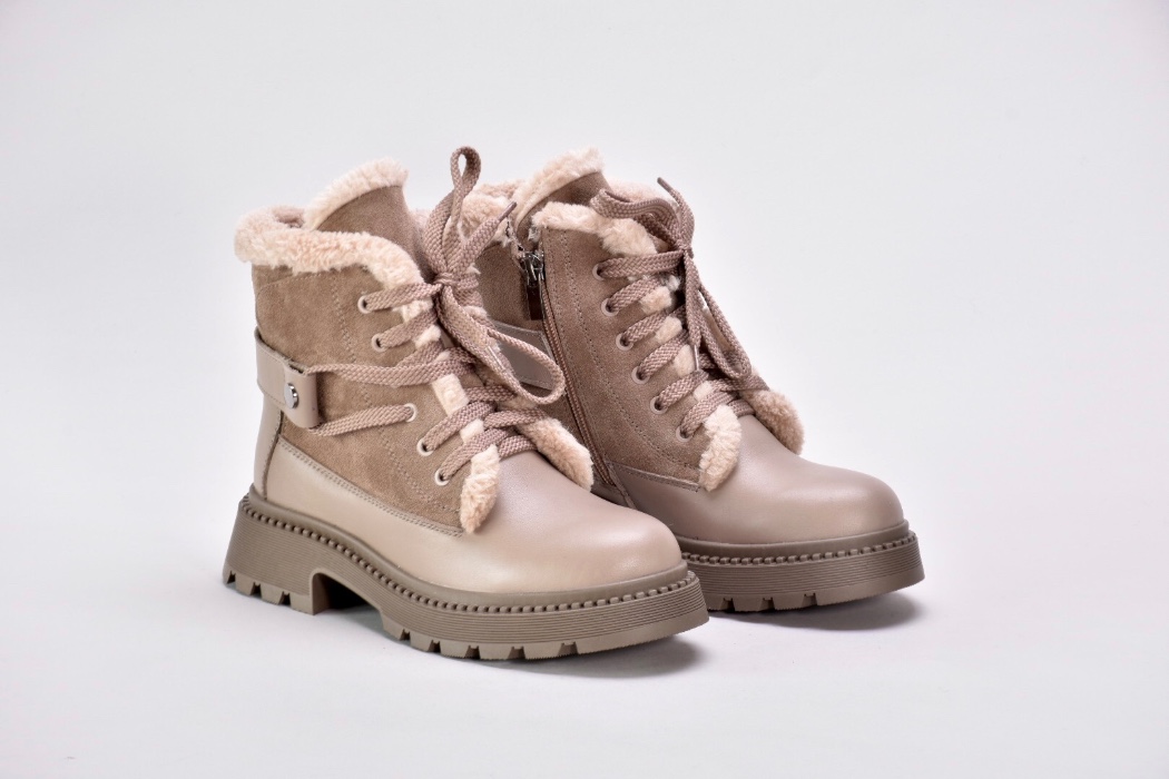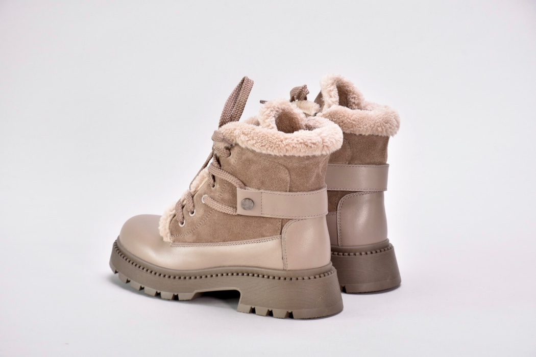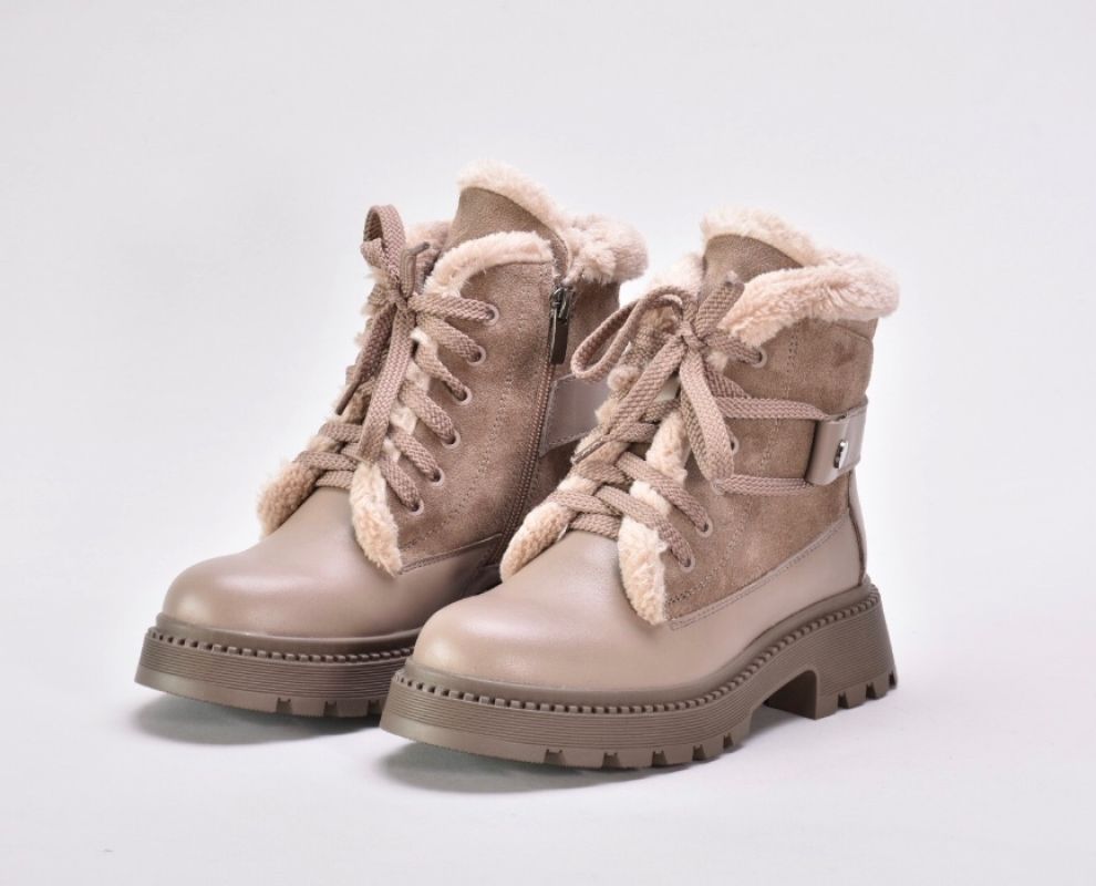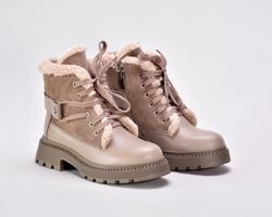 Зимові черевики бежеві з натуральної шкіри та замші