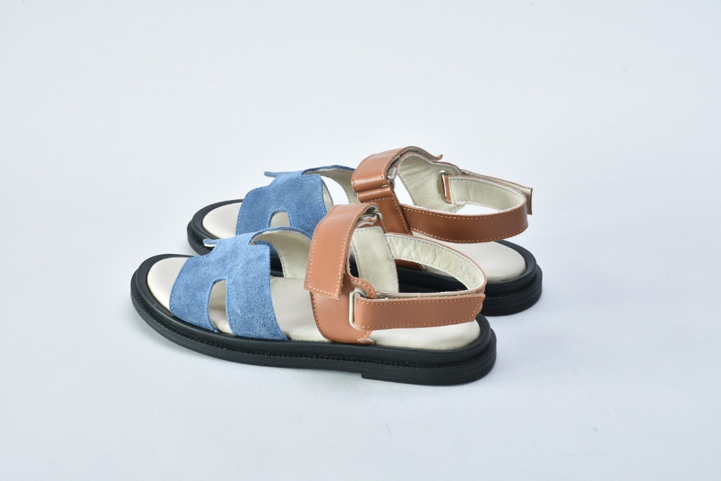 Широкий ремінець з натуральної шкіри коричневого кольору м'яко фіксує стопу,забезпечує ідеальну посадку завдяки липучці. Сучасний дизайн роблять ці босоніжки ідеальними для спекотних днів.
