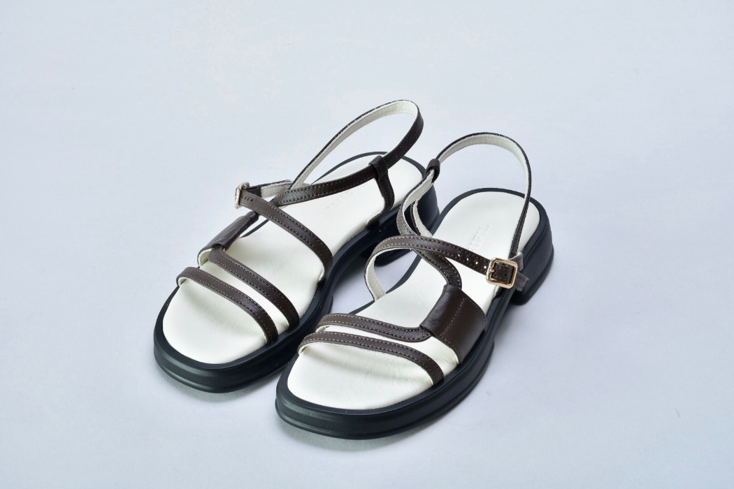 Мінімалістичні босоніжки від українського бренду inifil з ледь помітними перетинками, виглядають вишукано і стильно на нозі.