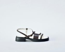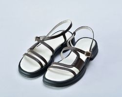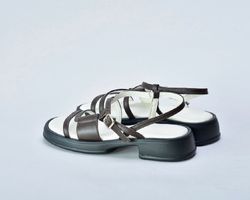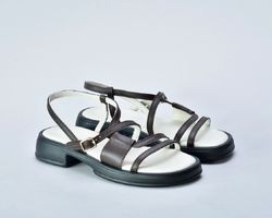 Коричневі шкіряні босоніжки втілення елегантності та мінімалізму.Їх витончений дизайн та чудова якість роблять їх незамінними для тих, хто цінує зручність .