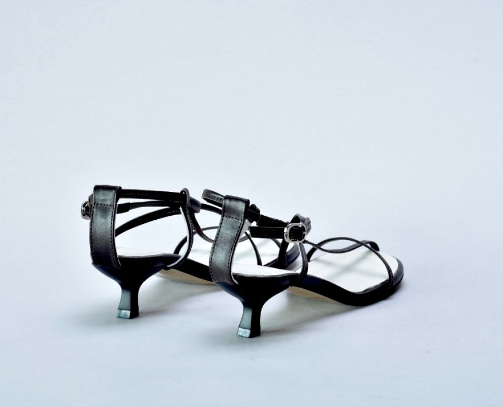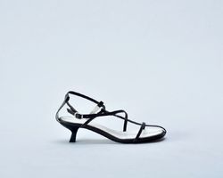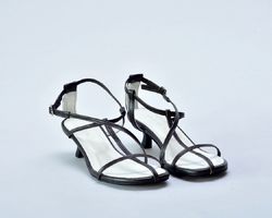 Вузенькі шкіряні ремінці ледь помітні на ніжці,тонкі маленькі підбори kitten heels та застібка навколо щиколотки — все це створює відчуття лаконічної елегантності.