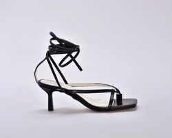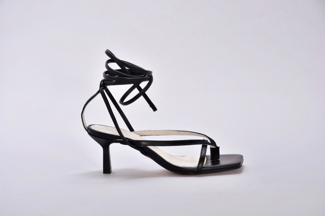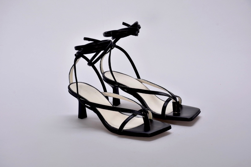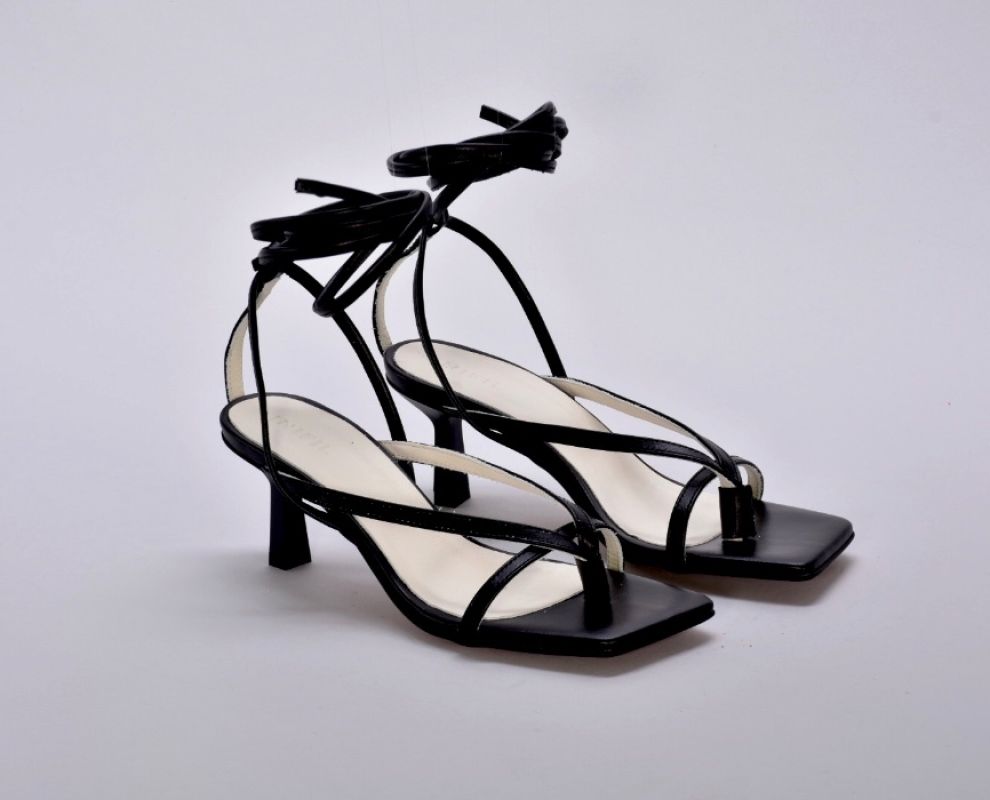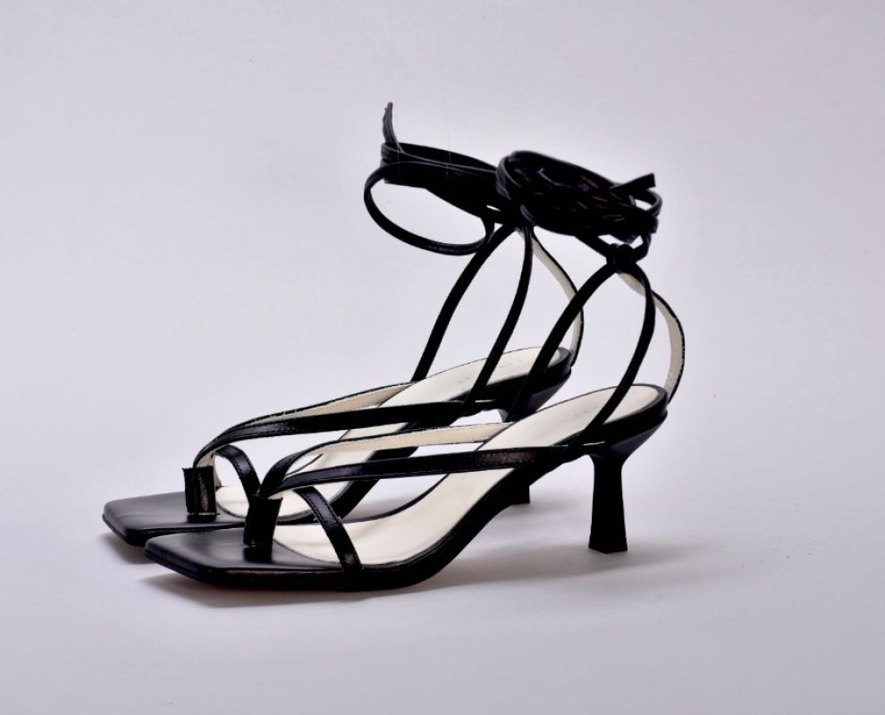 Шкіряні чорні босоніжки з тонкими ремінцями від українських бренду inifil , підтримують стопу, але не закривають її надміру.Елегантні та дуже привабливі, ідеальні для надання богемного відтінку будь-якому образу.