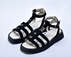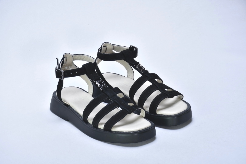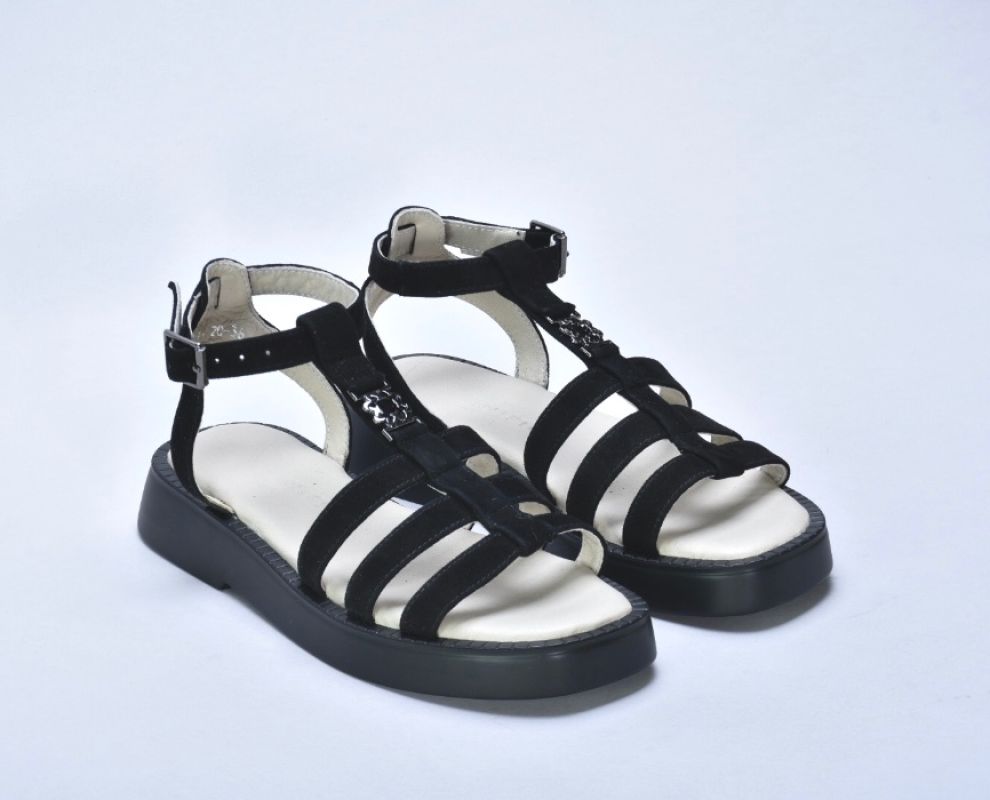 Босоніжки виготовлені з високоякісної натуральної замші та мають плетіння ремінців,що надає їм стильний вигляд.