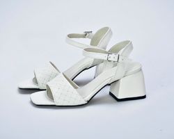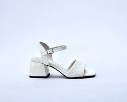 Босоніжки кольору айворі з натуральної шкіри на широких підборах від українських дизайнерів inifil символ розкіші і стилю.