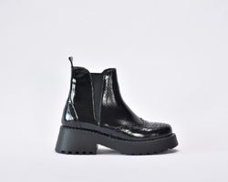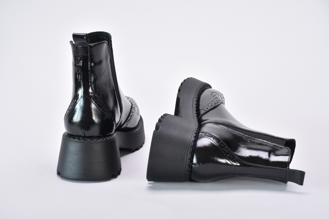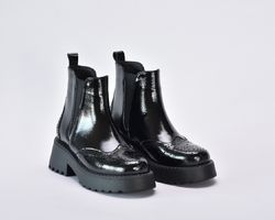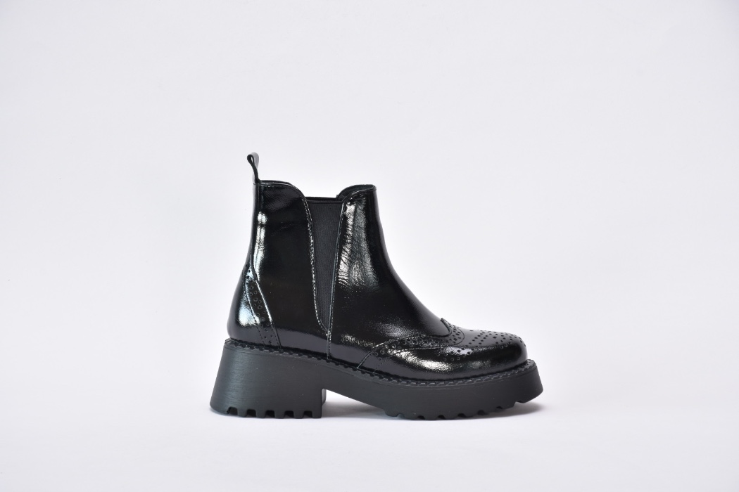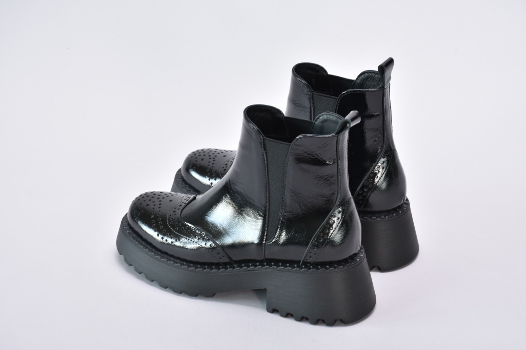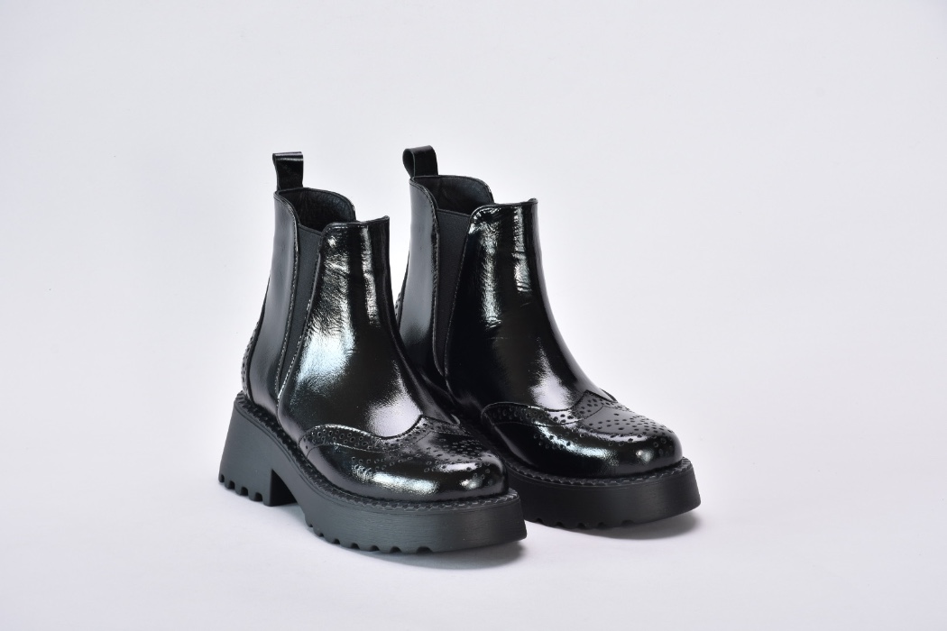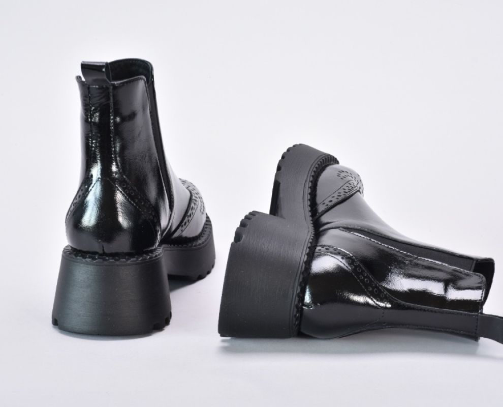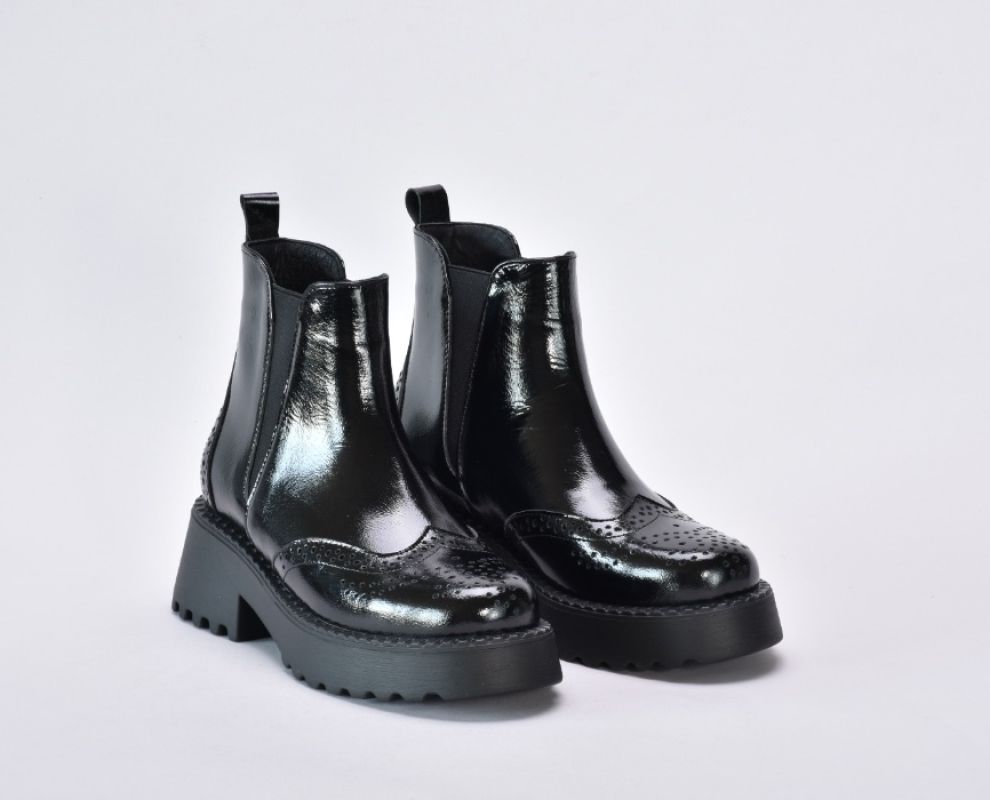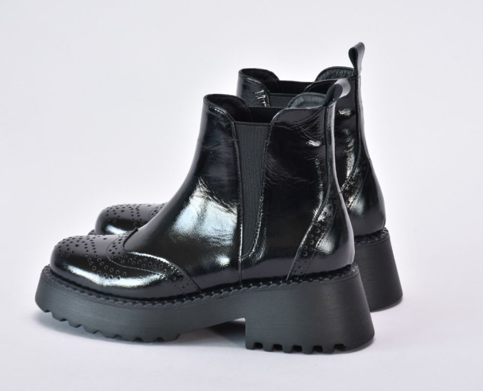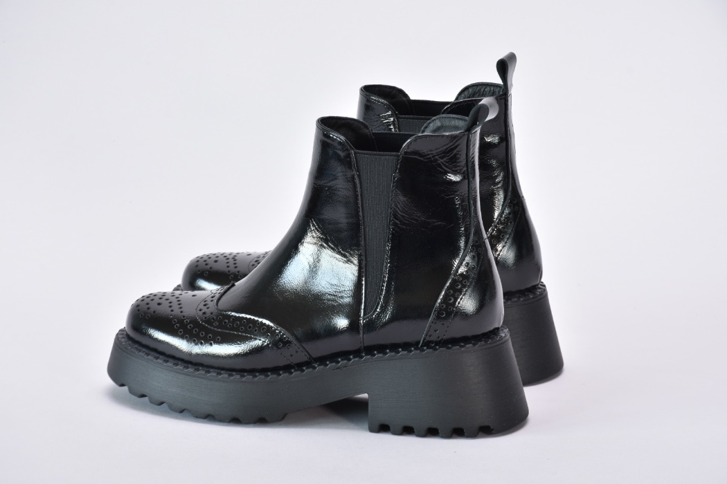 Наплак — це натуральна шкіра, яка вкрита тонким шаром лаку .Черевики від українського бренду inifil вирізняються ретельністю виготовлення, вишуканими лініями та добре структурованою формою, не позбавляючи незаперечного комфорту.Чорні черевики виготовлені з натуральної шкіри наплак,оснащенні декоративною перфарацією,еластичними бічними панелями для комфорту. Поліреутанова підошва забезпечує зчеплення.Всередині утеплювач байка з вовни.