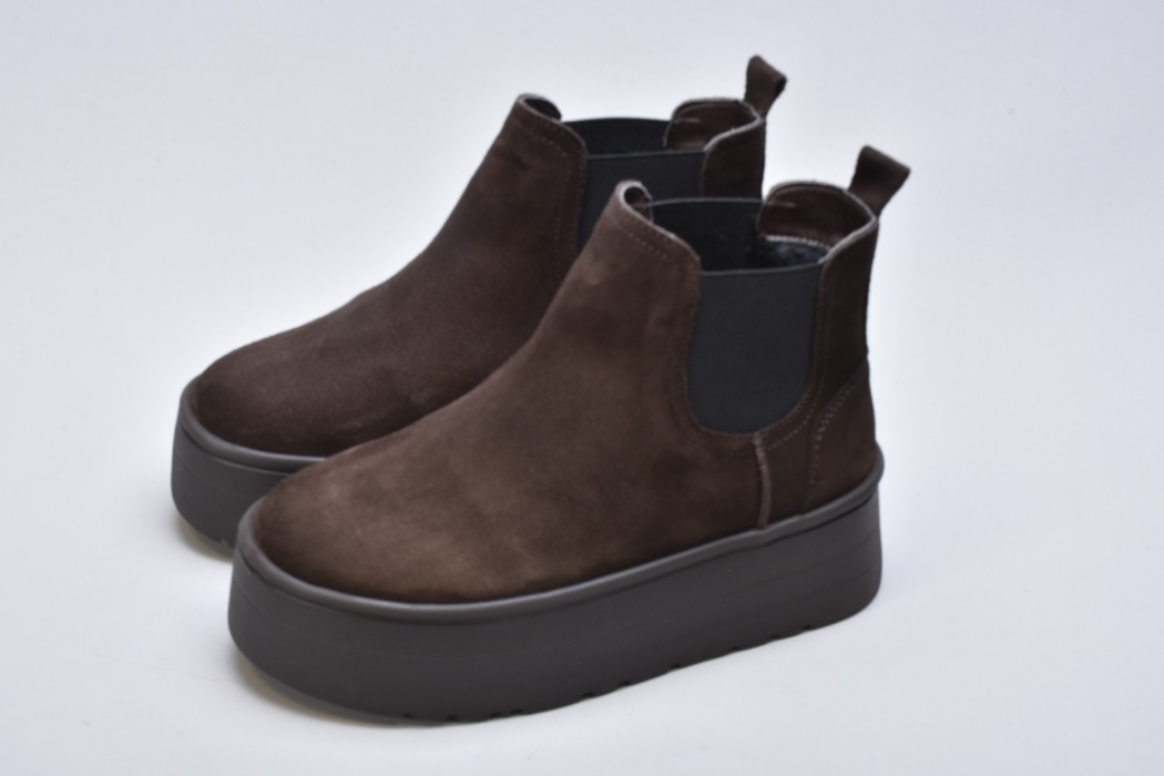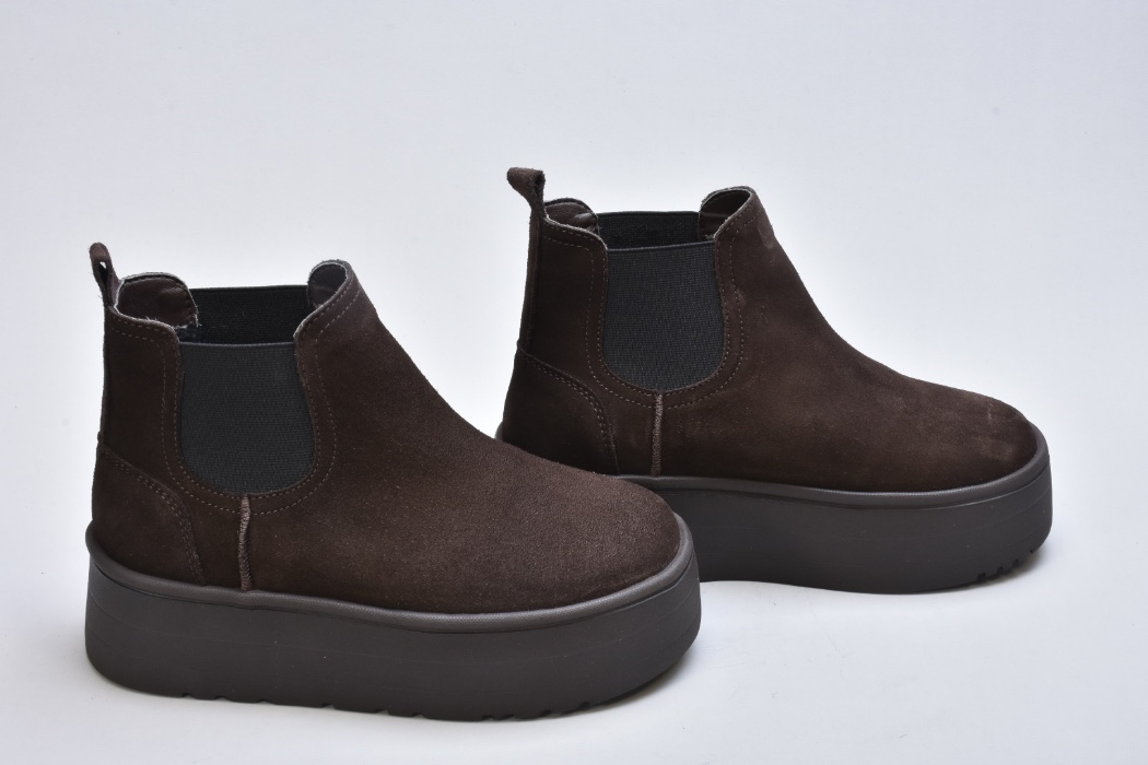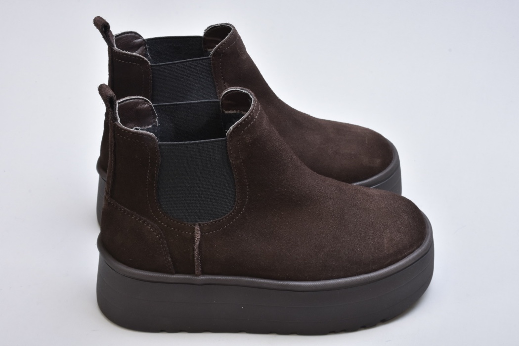 Стиль — сучасна інтерпретація класичних челсі з акцентом на об’ємну підошву й теплоту матеріалів. Уггі-челсі чудово поєднуються з пуховиками, пальтами та трикотажними костюмами, створюючи збалансований, теплий і преміальний зимовий образ.