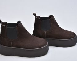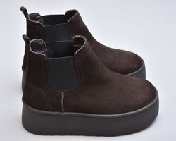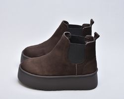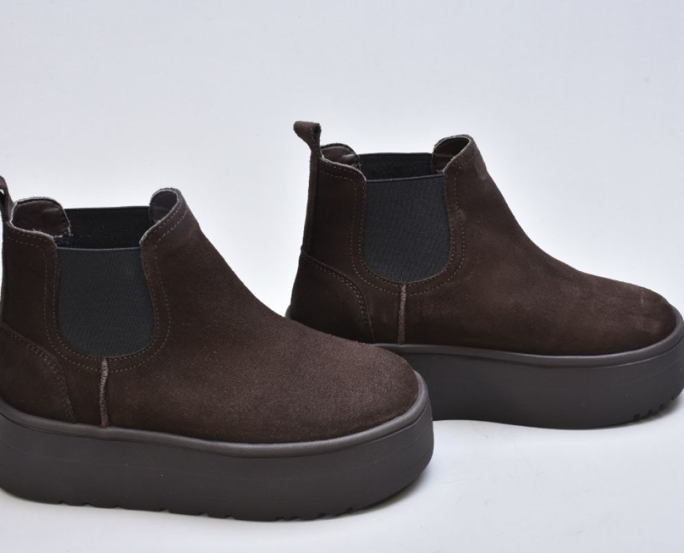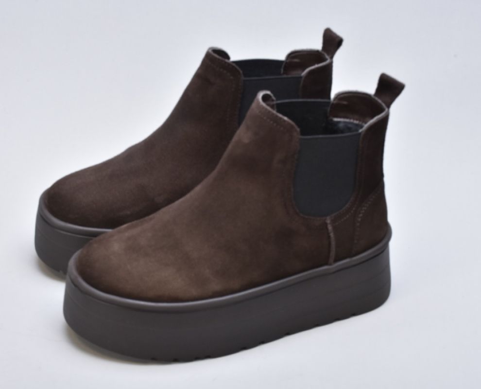Уггі-челсі inifil у трендовому відтінку «шоколад» — це поєднання сучасного силуету та безкомпромісного зимового комфорту. Насичений коричневий колір замші виглядає глибоко та дорого, легко поєднується з теплими зимовими образами й надає взуттю особливої вишуканості.