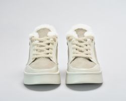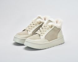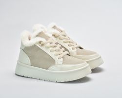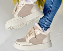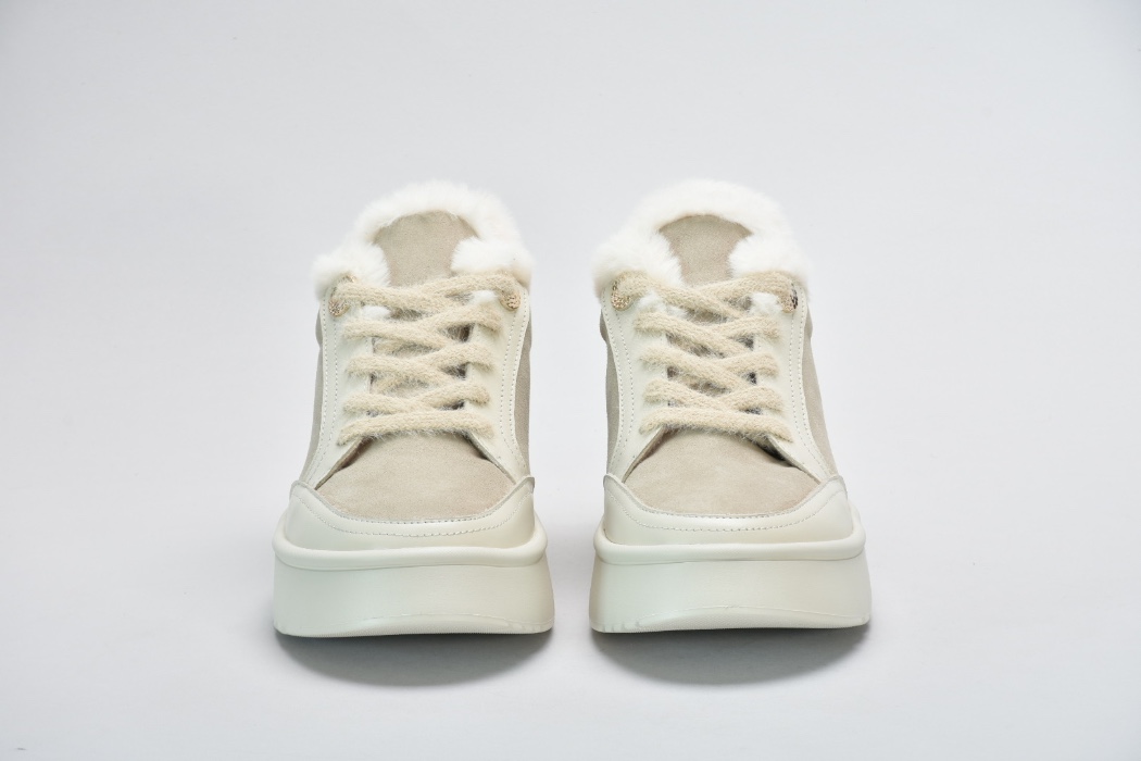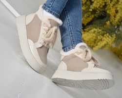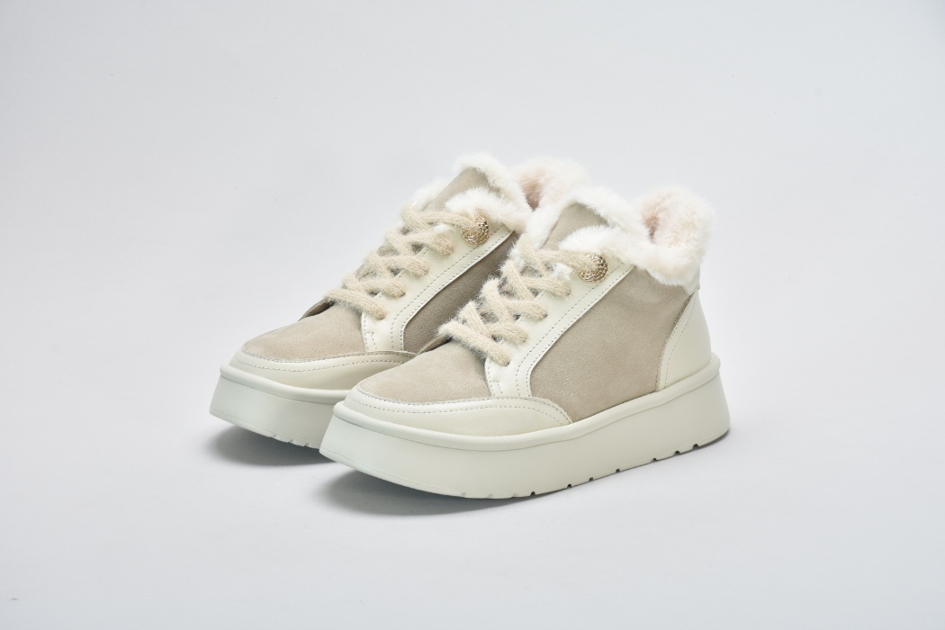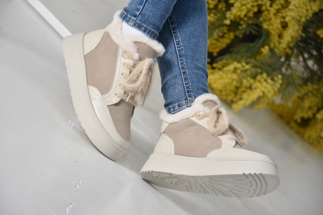 Зверху на підйомі оснащені шнурівкою та декоровані хутром.