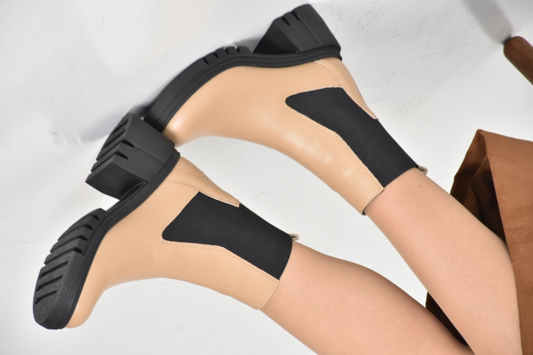 Ми оновили класичні челсі: додали масивну підошву на підборі та зробили їх у модному карамельному відтінку шкіри .