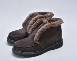 Модель виготовлена з натуральної замші кольору шоколад — відтінку, що зараз у модних колекціях провідних дизайнерів вважається новою класикою. М’яка фактура замші додає образу глибини й елегантності.