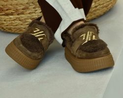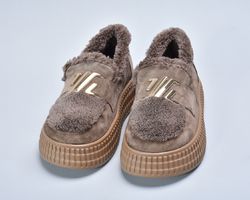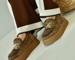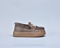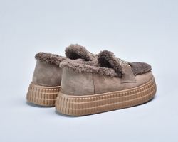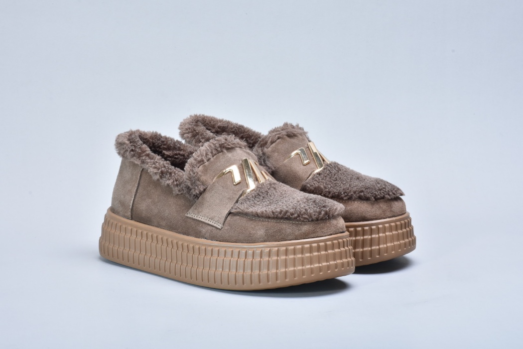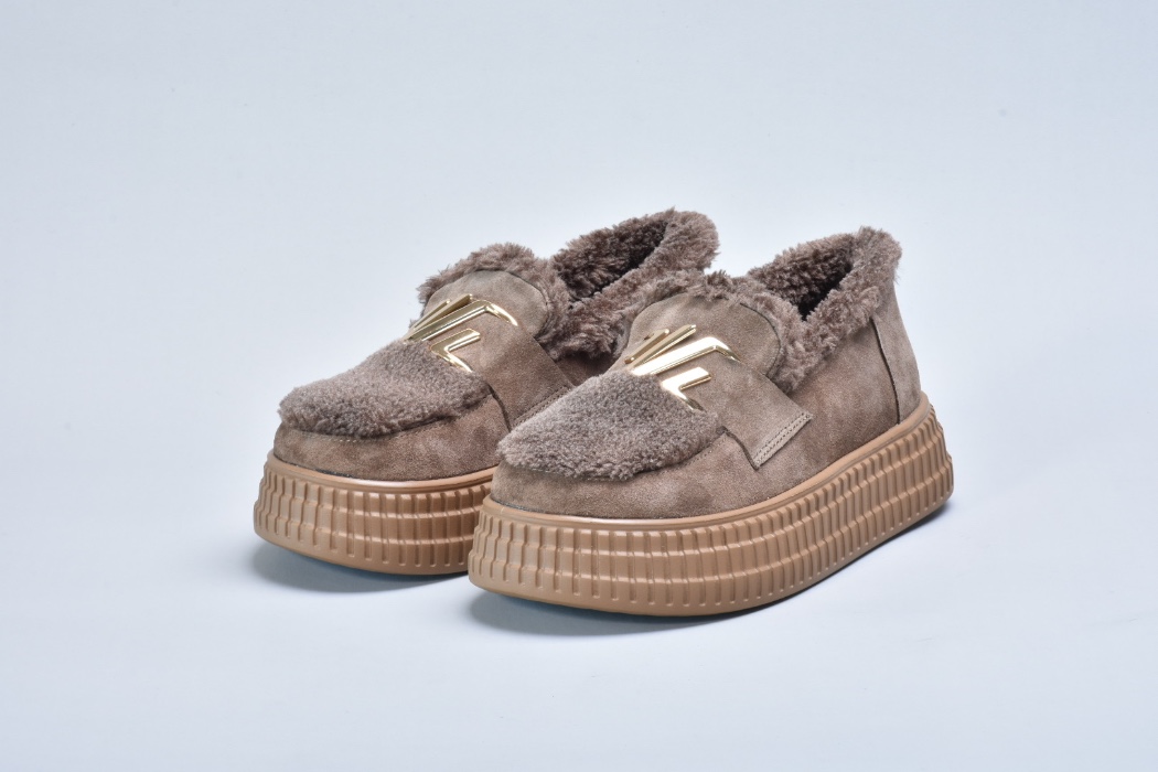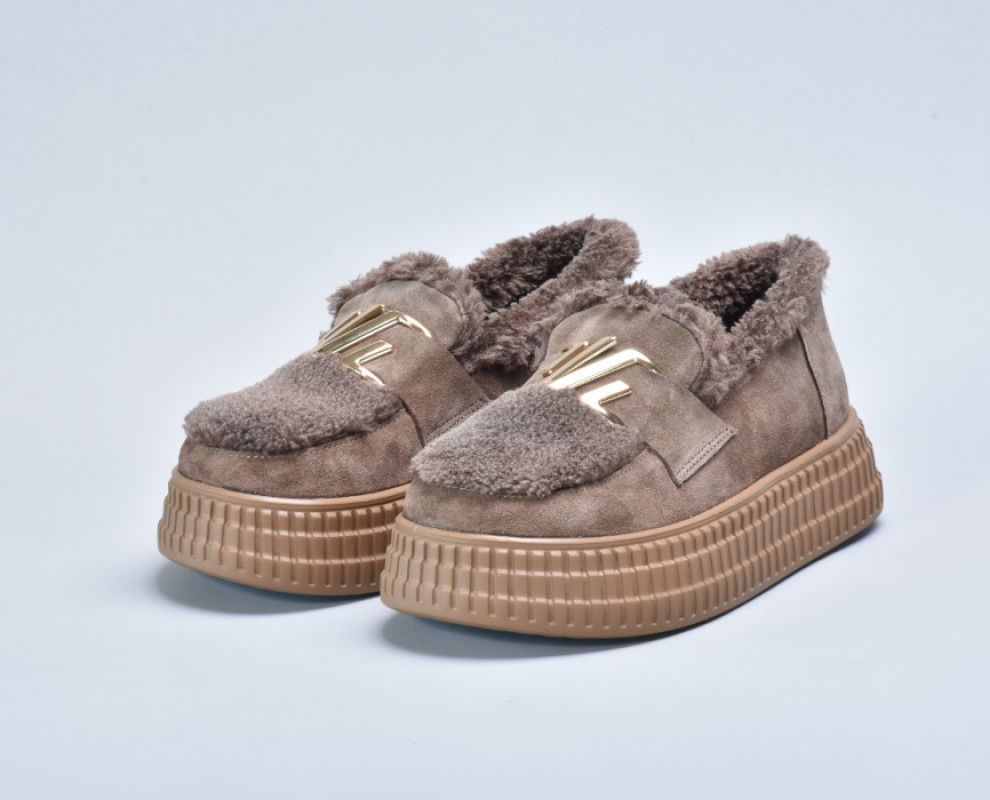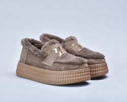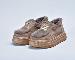 Зверху оздоблені пишним штучним хутром, яке не лише надає черевикам витонченого об’єму, а й створює теплий акцент, роблячи взуття більш затишним.