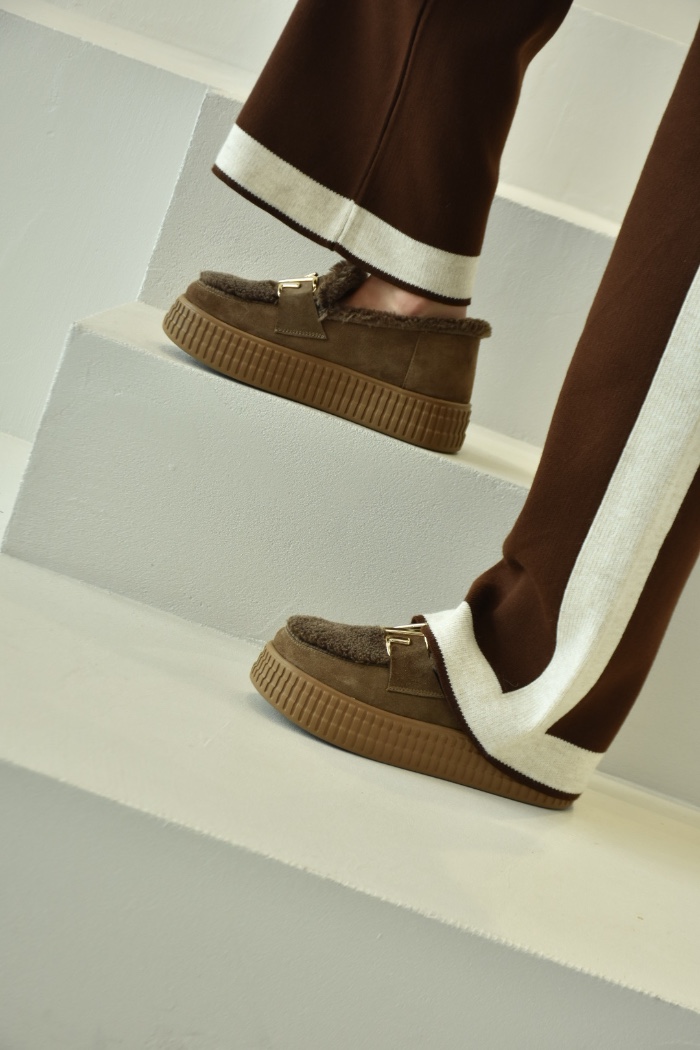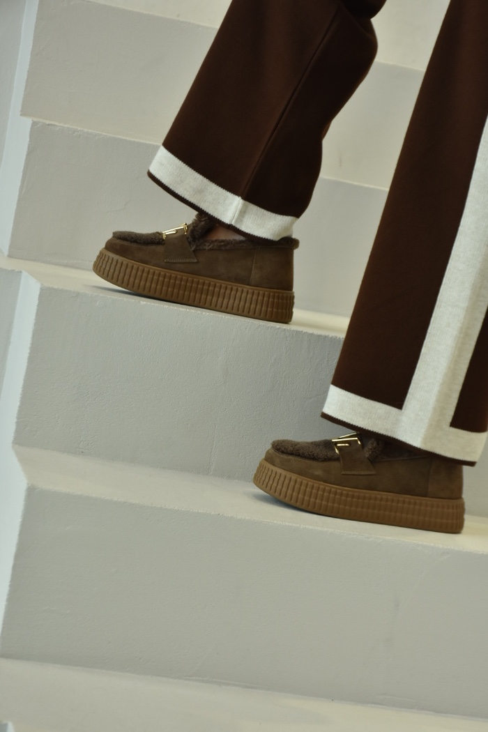 Виконані із високоякісного замшу преміум-класу у глибокому бежево-кавовому відтінку. Матеріал має м’яку, делікатну текстуру з оксамитовим відблиском, що створює відчуття благородної розкоші.