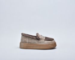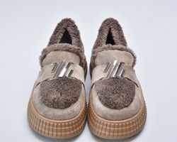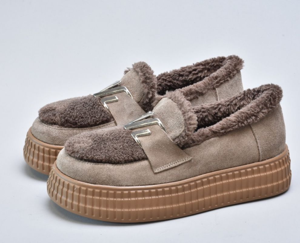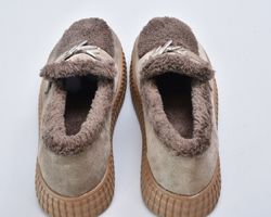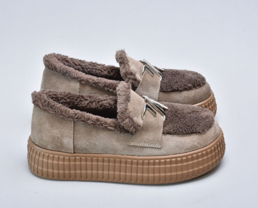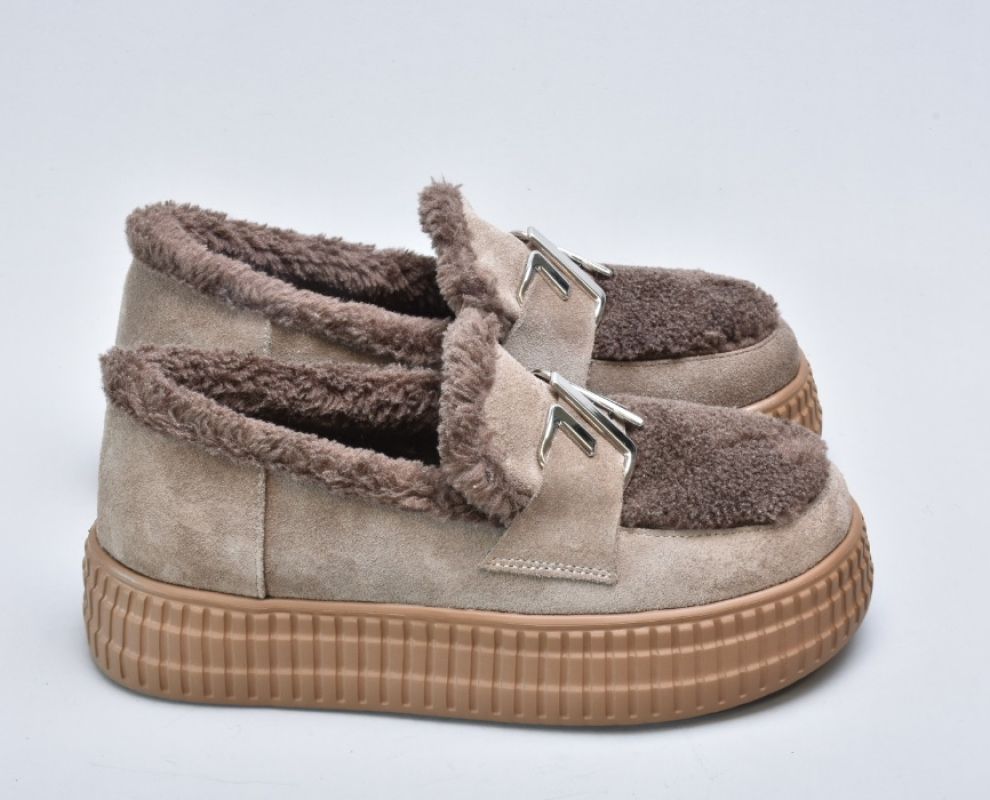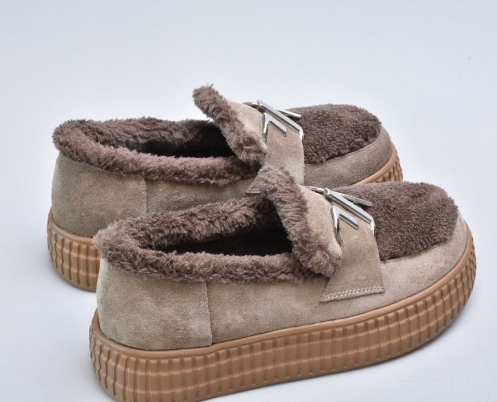 Зимові бежеві черевики з натуральної замші