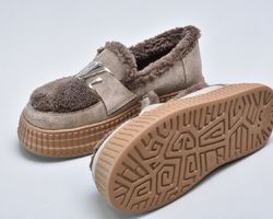 Зимові черевики замшеві на платформі з фурнітурою нікель