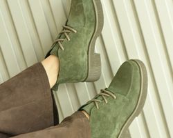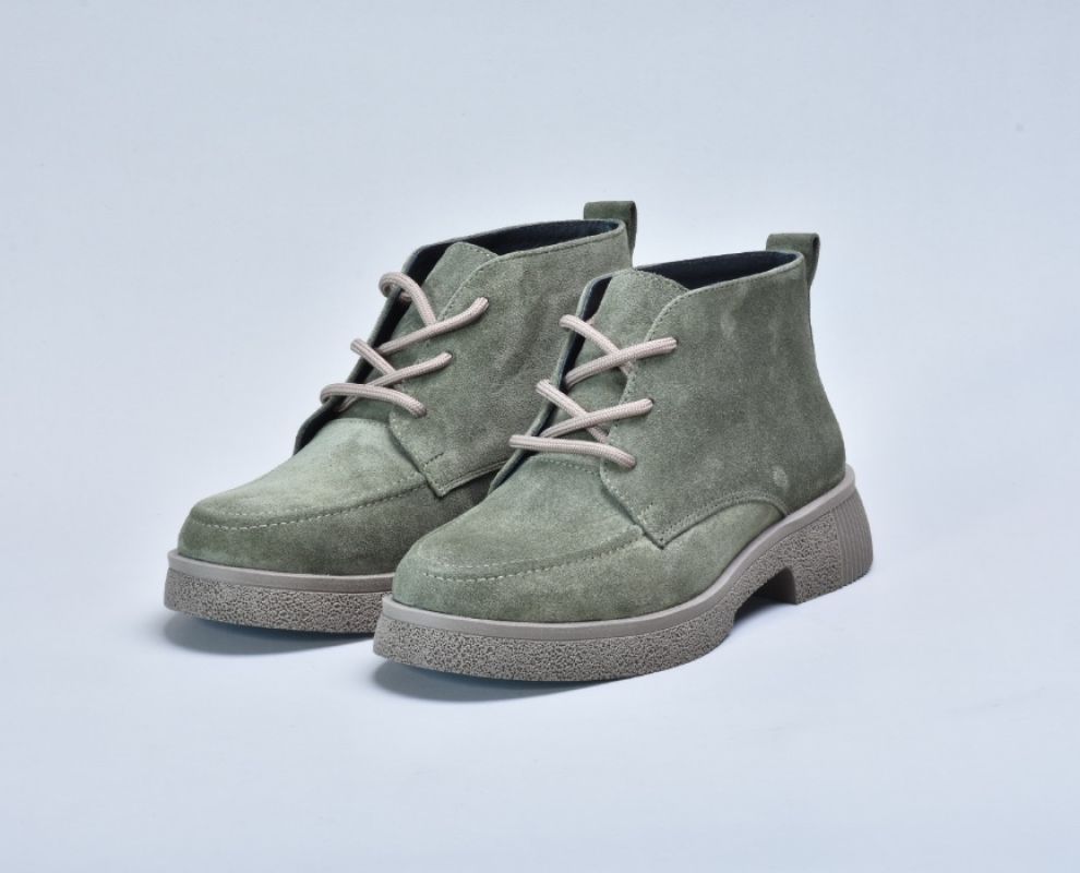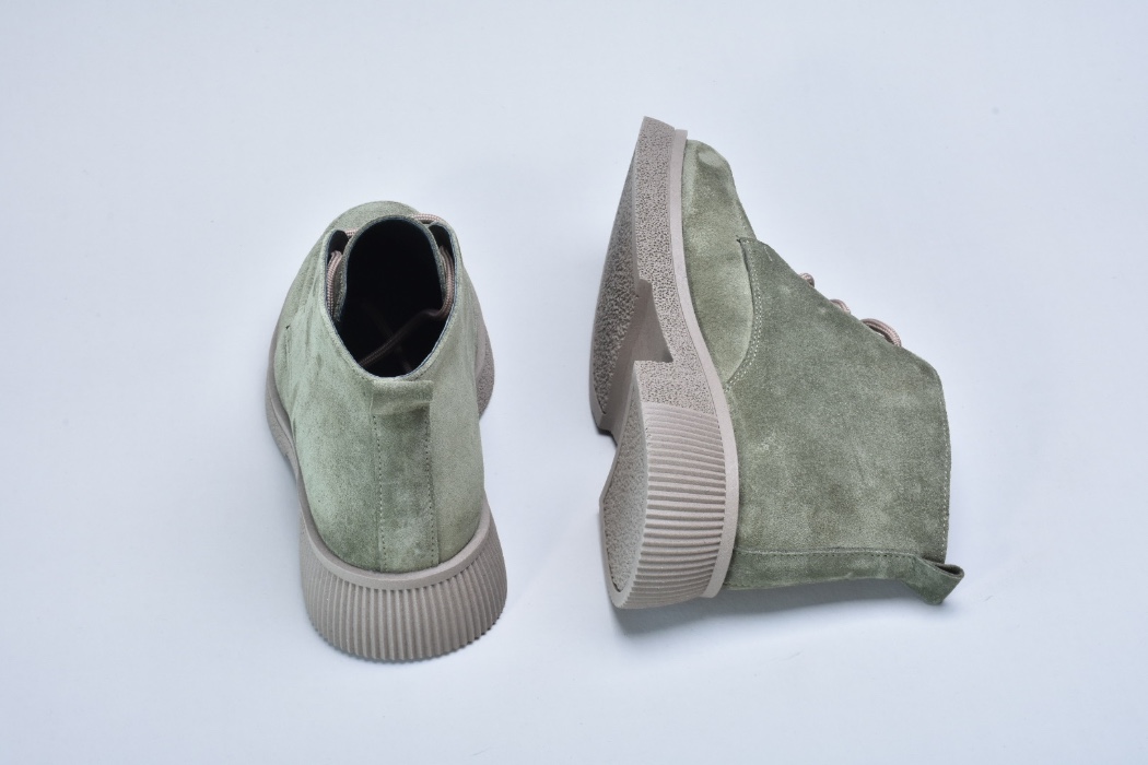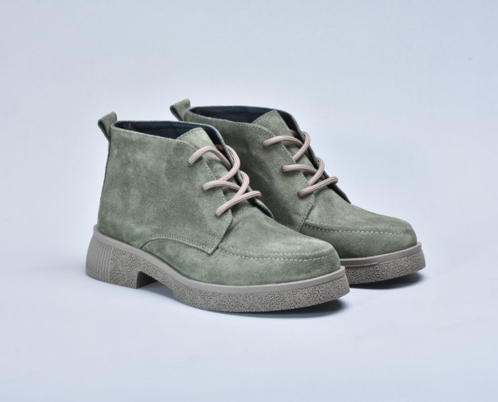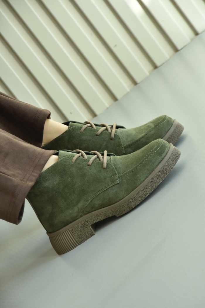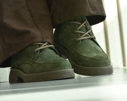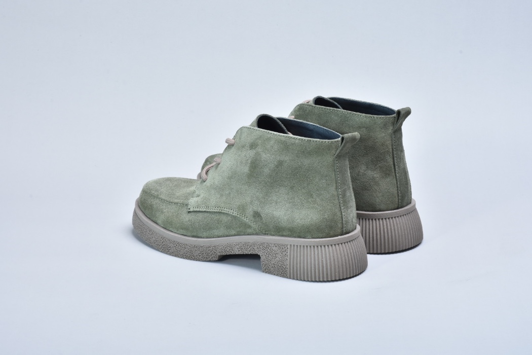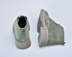 Ці стильні та комфортні черевики виготовлені з високоякісної натуральної замші насиченого оливкового відтінку. Це ідеальний варіант для тих, хто цінує поєднання сучасного дизайну та натуральних матеріалів.