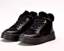 Зверху на підйомі оснащені шнурівкою та декоровані хутром.