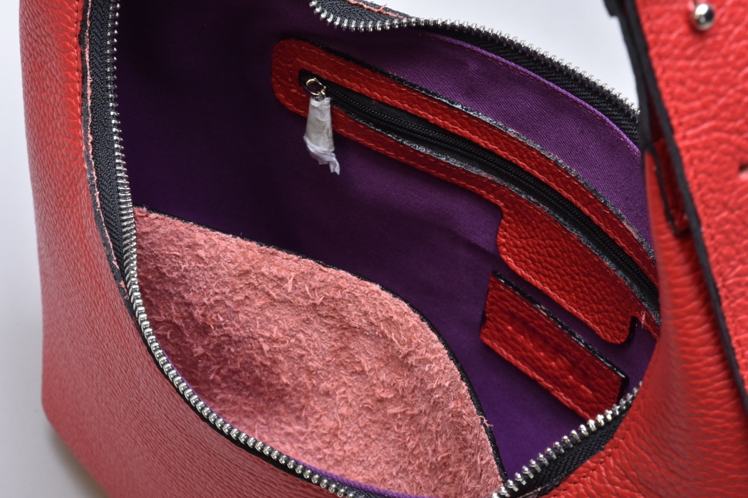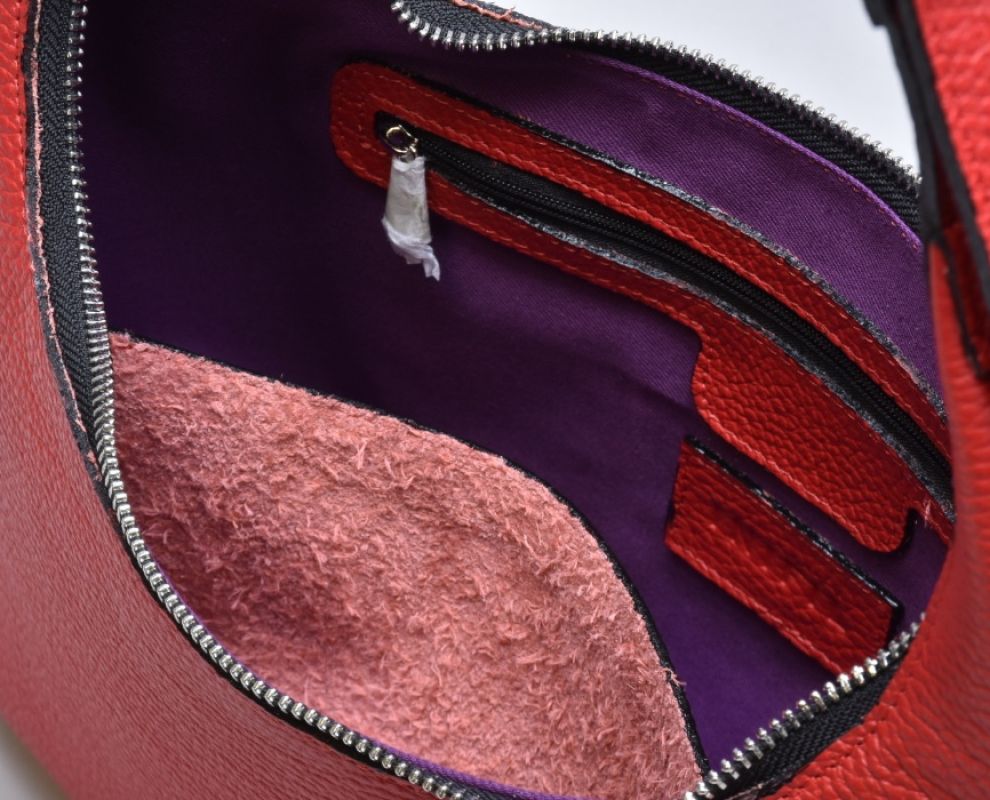 Класична модель виконана з натуральної шкіри , прикрашена всередині натуральним яскравим підкладом (натуральна бавовна 100%)характерним для колекції .