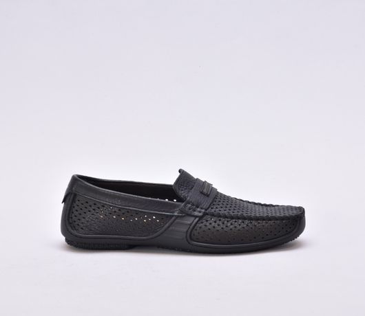 Шкіряні чоловічі мокасини з перфарацією чорного кольору