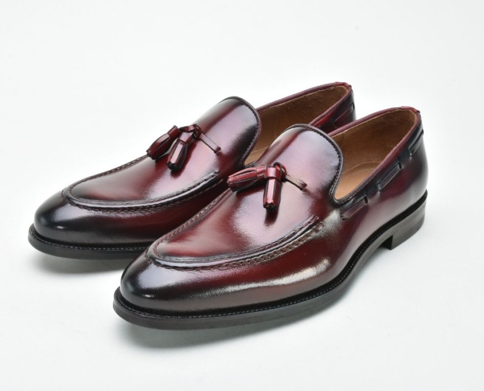 Чоловічі шкіряні туфлі марсалового кольору .Оригінальність і відповідність останнім модним тенденціям.