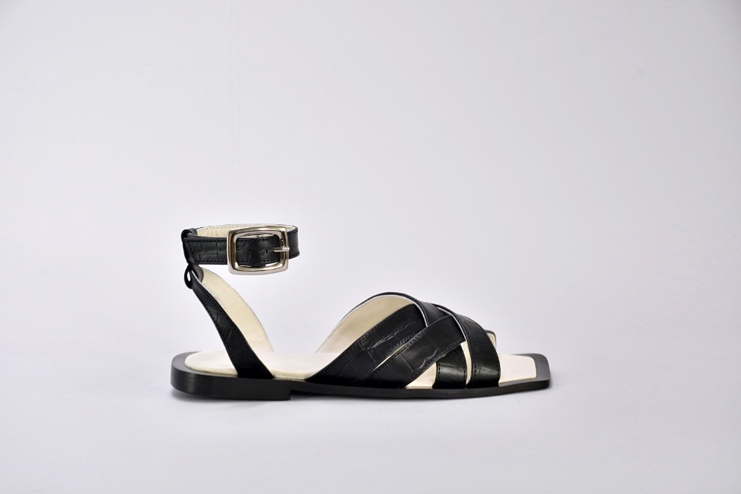 Босоніжки виготовлені з мякої натуральної шкіри з перехресними ремінцями ,які елегантно обрамляють ніжку та шкіряним ремішком з пряжкою навколо щиколотки.