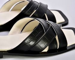 Босоніжки з натуральної шкіри від українских дизайнерів inifil виконані на зручній підошві на низькому ходу з квадратним мисом,ідеальні для щоденного носіння та відпустки.