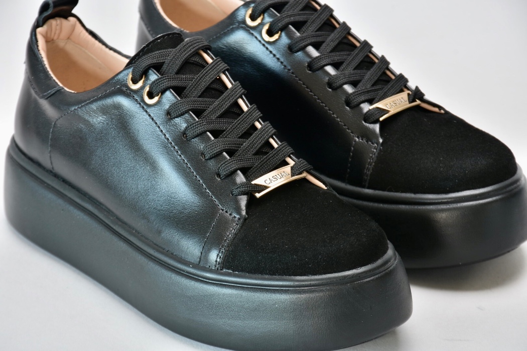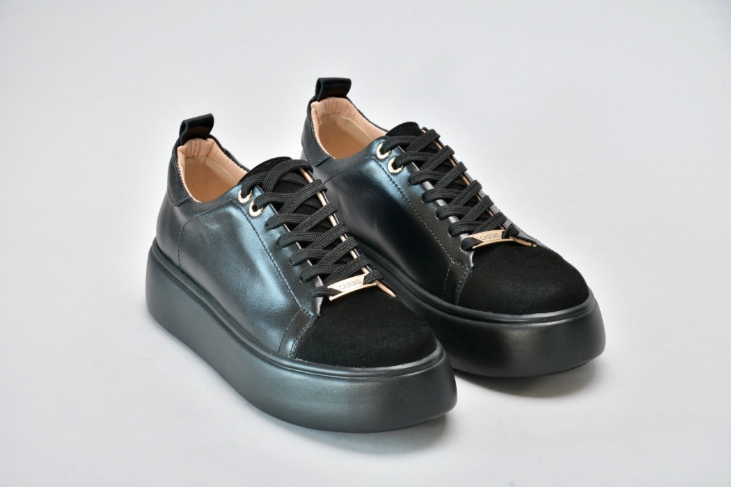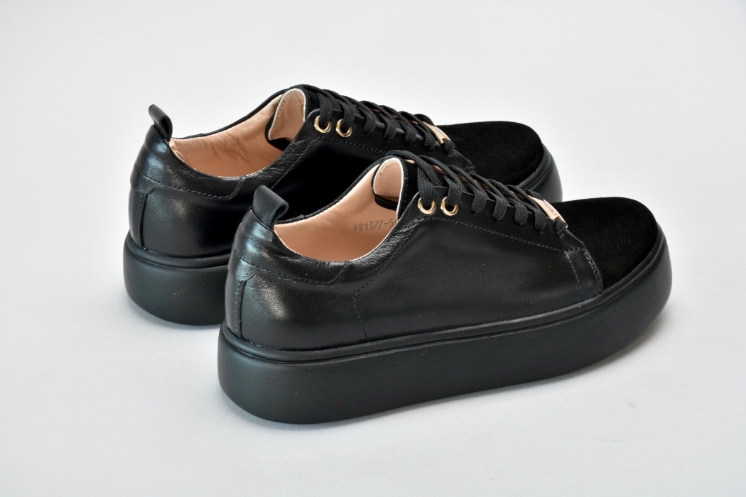 Вінтажну естетику цих сучасних кедів підкреслюють класичні рішення: поєднання натуральних текстур , гладкої чорної шкіри та натуральної замші .