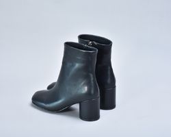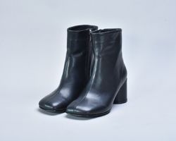 Чорні шкіряні ботильйони з квадратним мисом