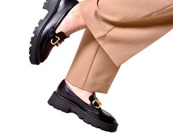 Класичні лофери inifil мають ще більше ефекту завдяки масивній підошві та яскравій фурнітурі в кольорі золото.