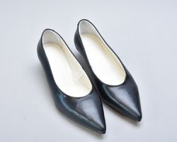 Глибокий чорний колір виглядає благородно та надзвичайно ефектно. Гладка натуральна шкіра з делікатним природним блиском підкреслює чистоту ліній і створює відчуття преміальної якості. Лаконічний дизайн робить модель позачасовою — такі туфлі ніколи не виходять з моди і завжди виглядають дорого.