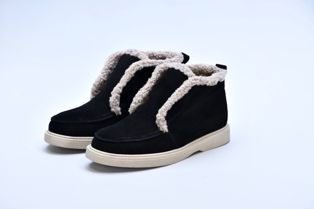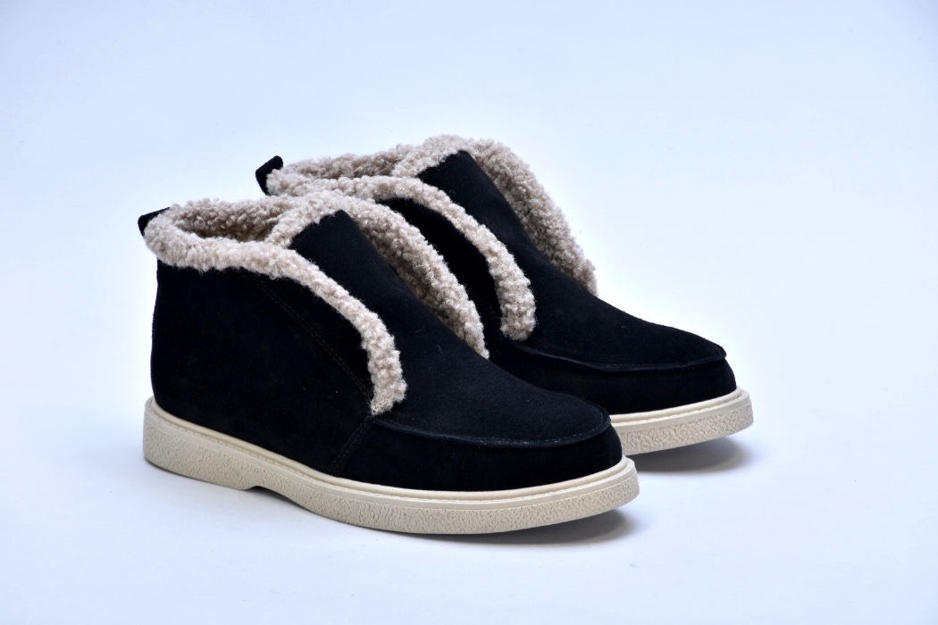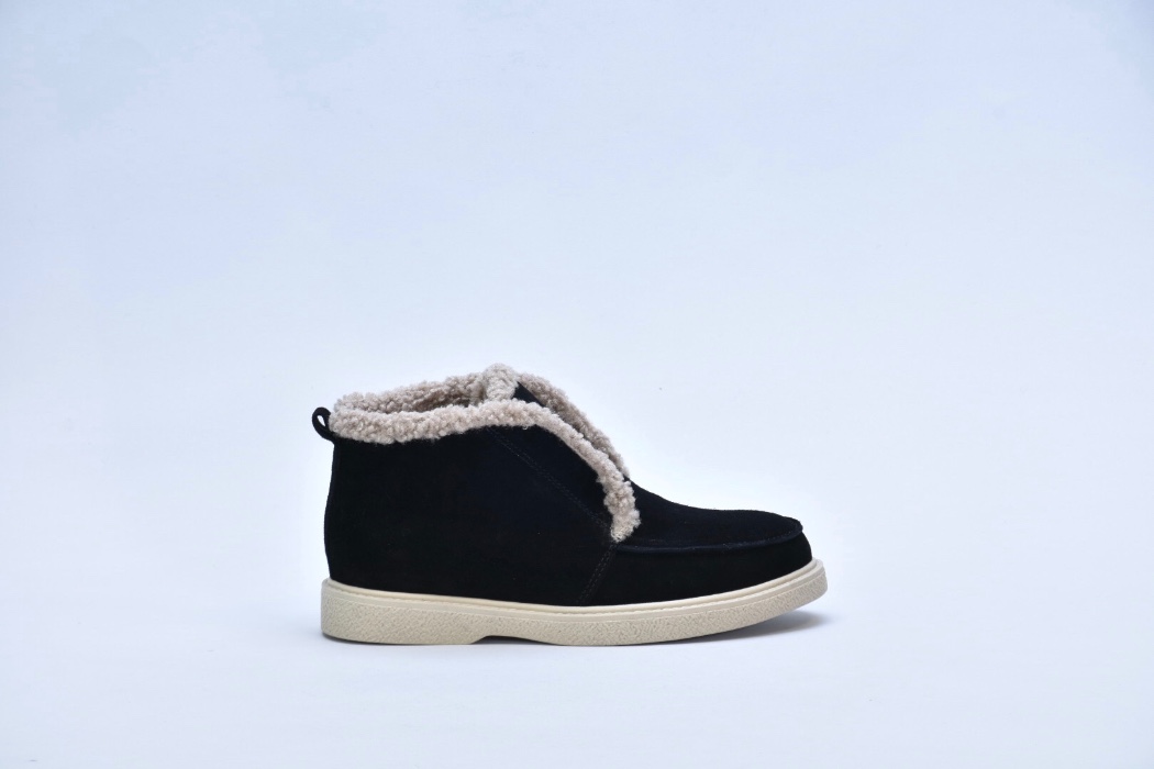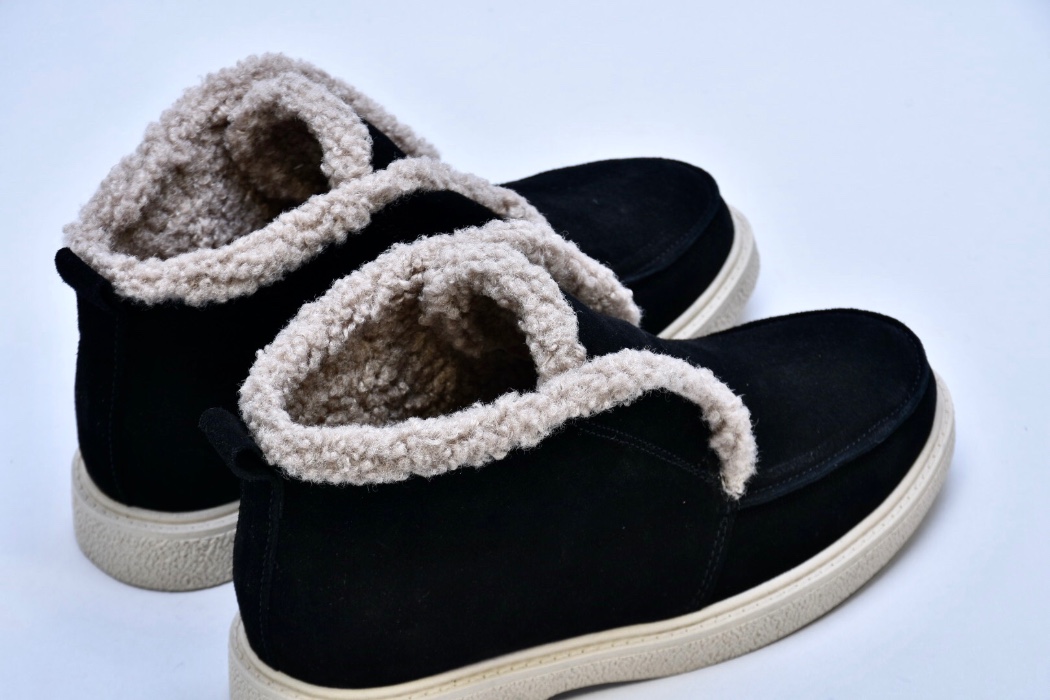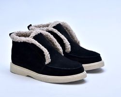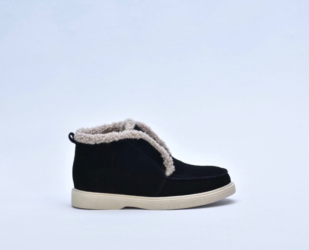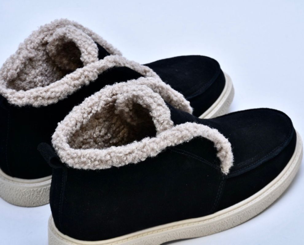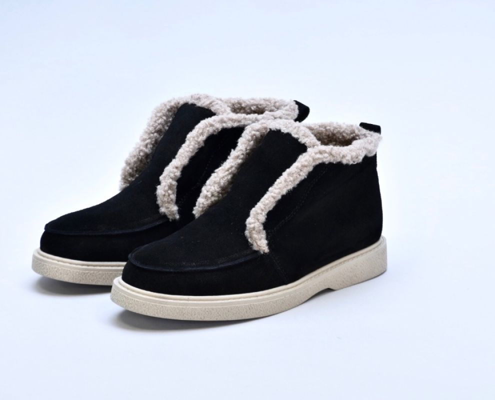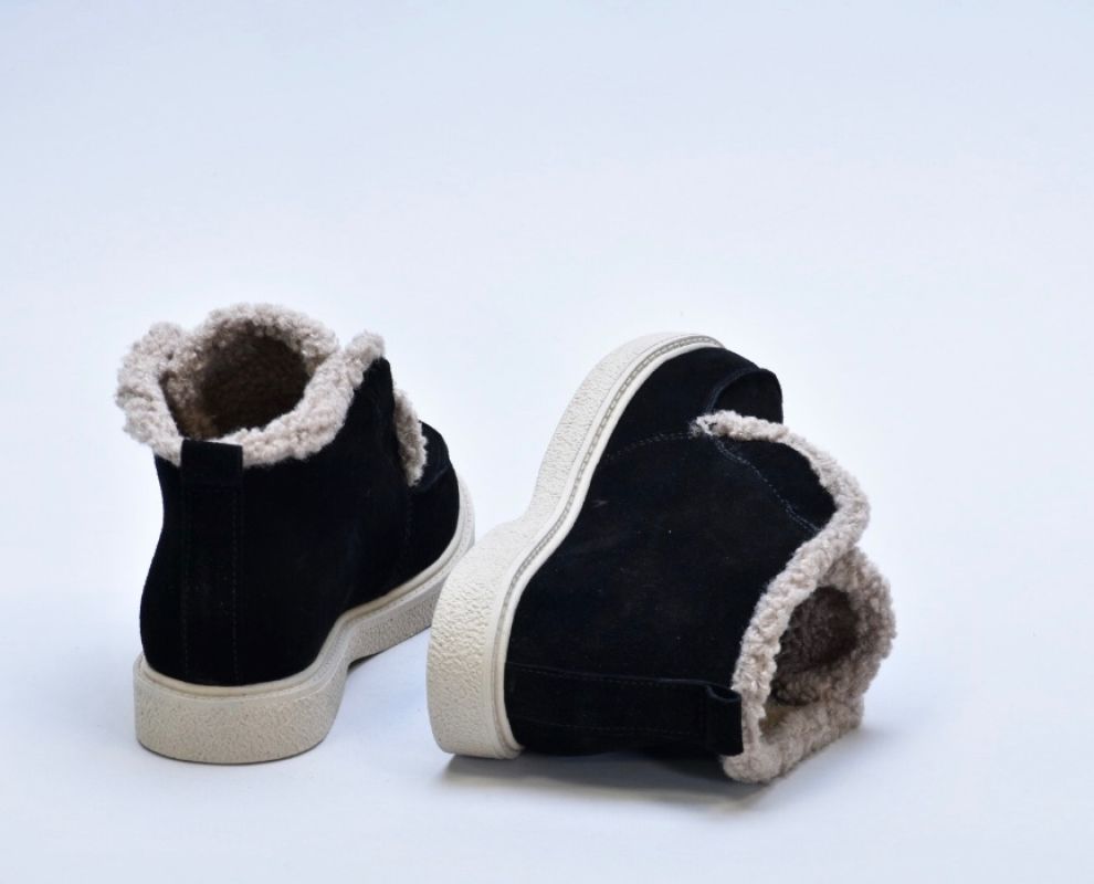 Ця пара дозволить вам експериментувати та створювати різноманітні образи — від повсякденних до ошатних.Виконані з натуральної якісної замші чорного кольору ,утеплені і декоровані штучним хутром.