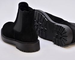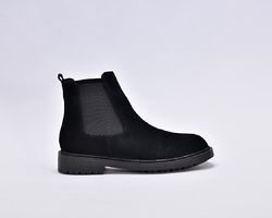 Черевики челсі зимові виконані з якісної натуральної замші чорного кольору , мають дуже теплий утеплювач вовну та підошву з поліреутану.