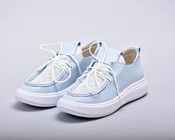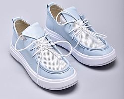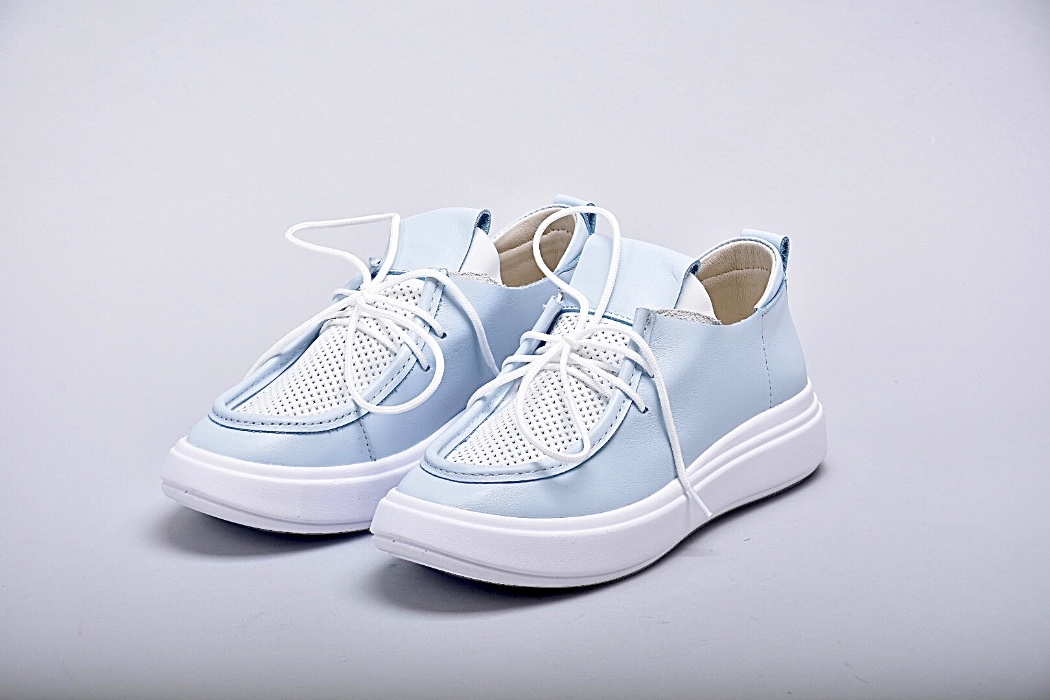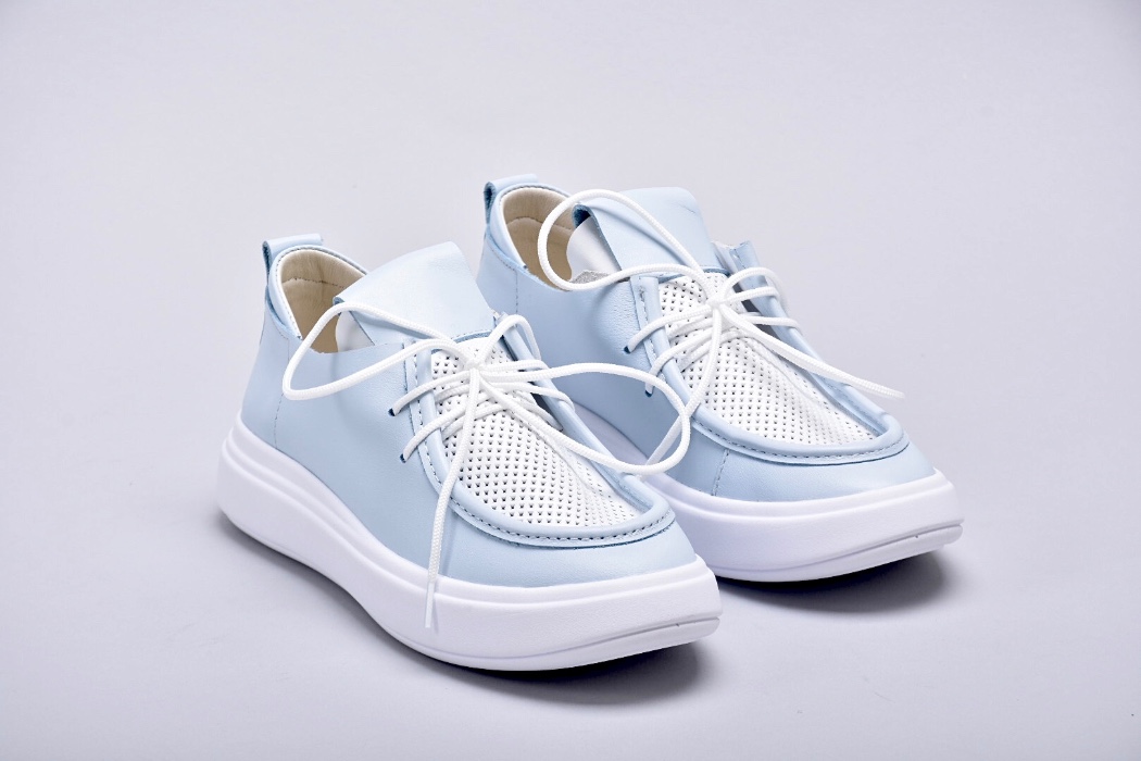Оснащені білою легкою підошвою 3,5 см та шнурівкою в тон.На підйомі мають перфарацію.