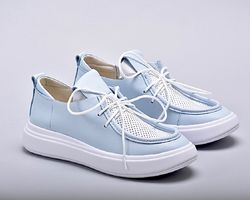 Новинка сучасних зручних кедів для весни та літа.Ексклюзивна модель виконана з якісної шкіри в поєднанні кольорів шкіри бірюза та білої.