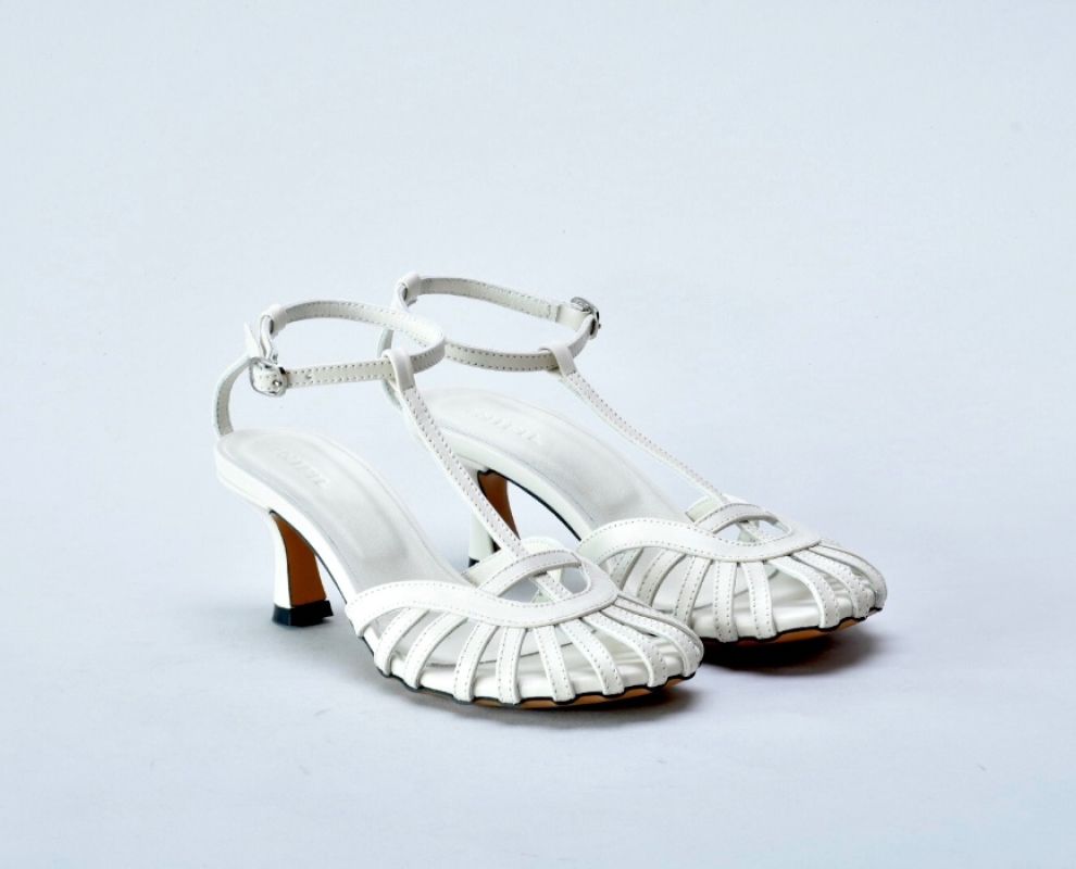 Дизайнерські шкіряні босоніжки з тонкими ремінцями на підборах від українського бренду inifil .