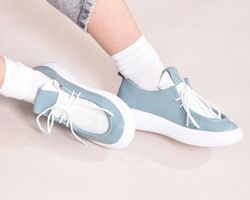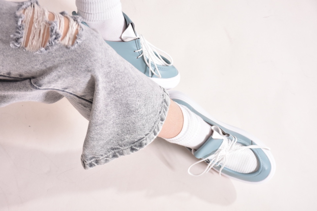 Оснащені білою легкою підошвою 3,5 см та шнурівкою в тон.На підйомі мають перфарацію.