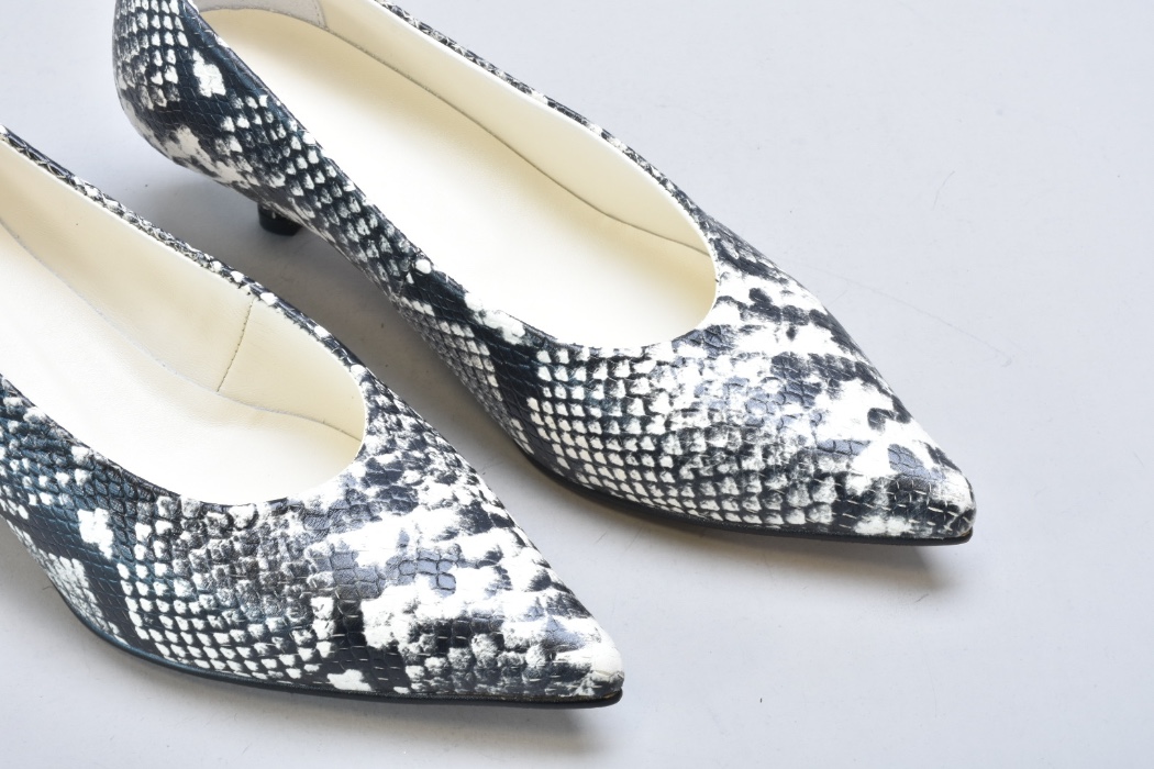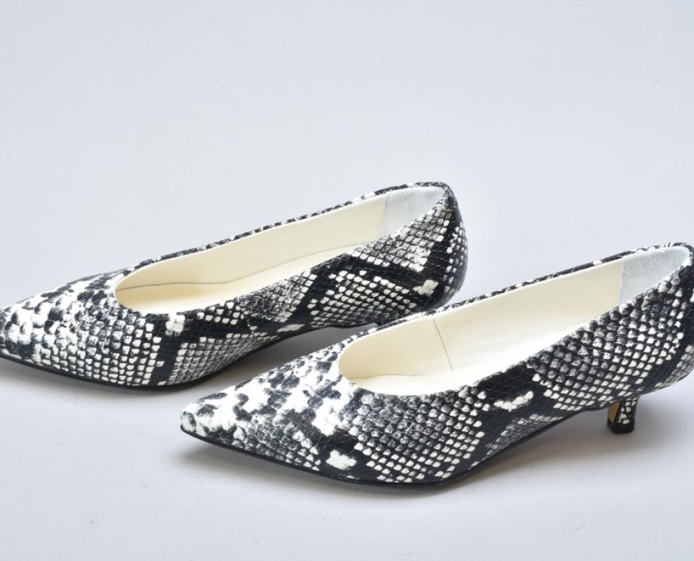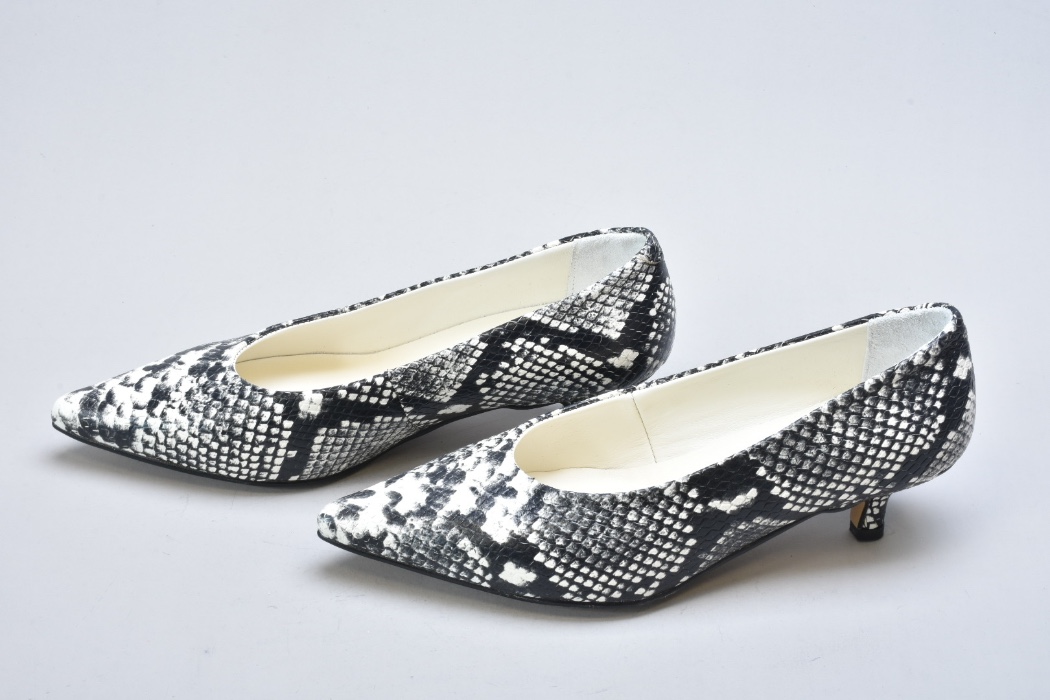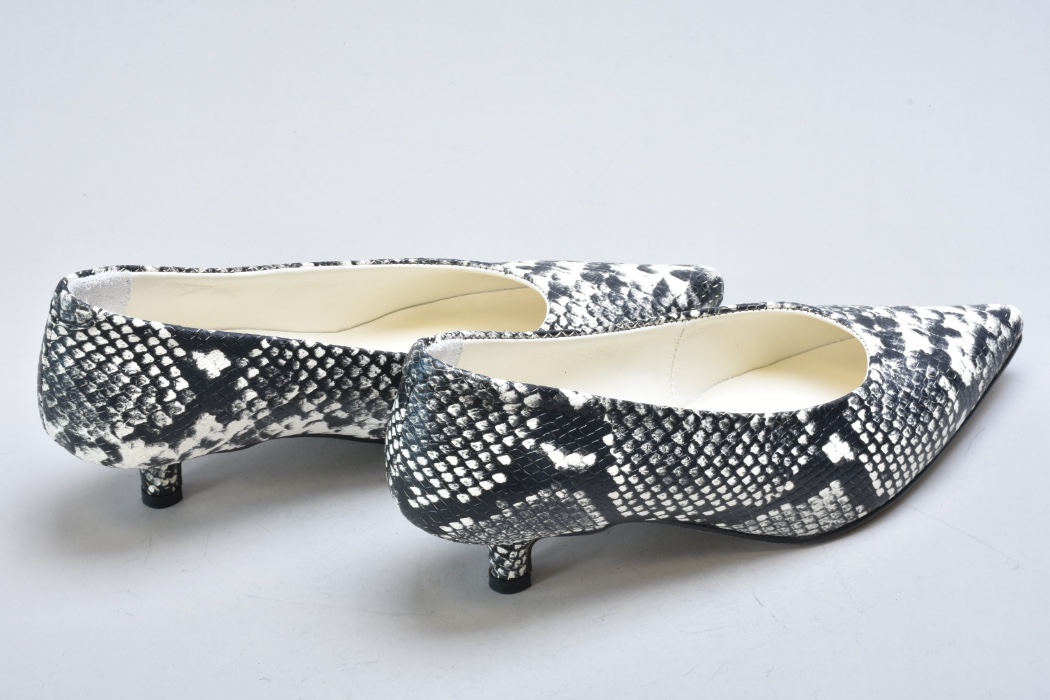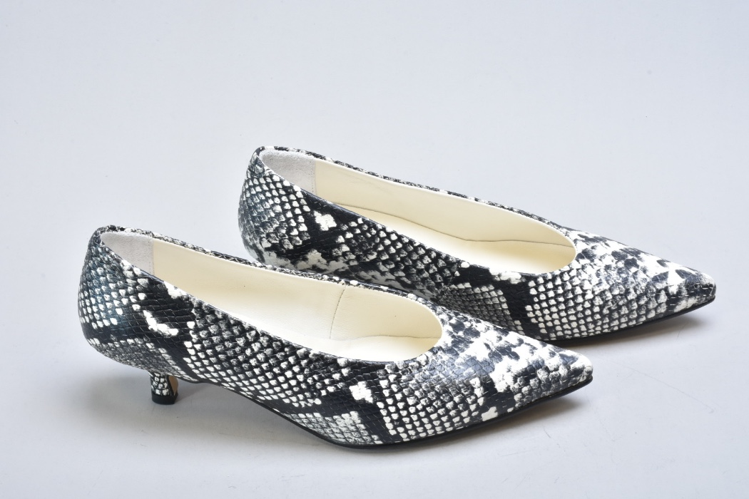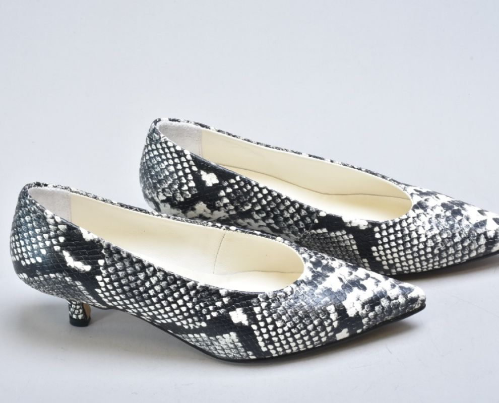 Силует туфель витончений та виразний. Подовжений загострений носок формує аристократичну лінію і візуально подовжує силует. Витончений підбор kitten heelпідкреслює сучасну тенденцію до інтелігентної елегантності — легкої, стриманої, але бездоганно стильової.