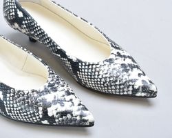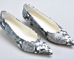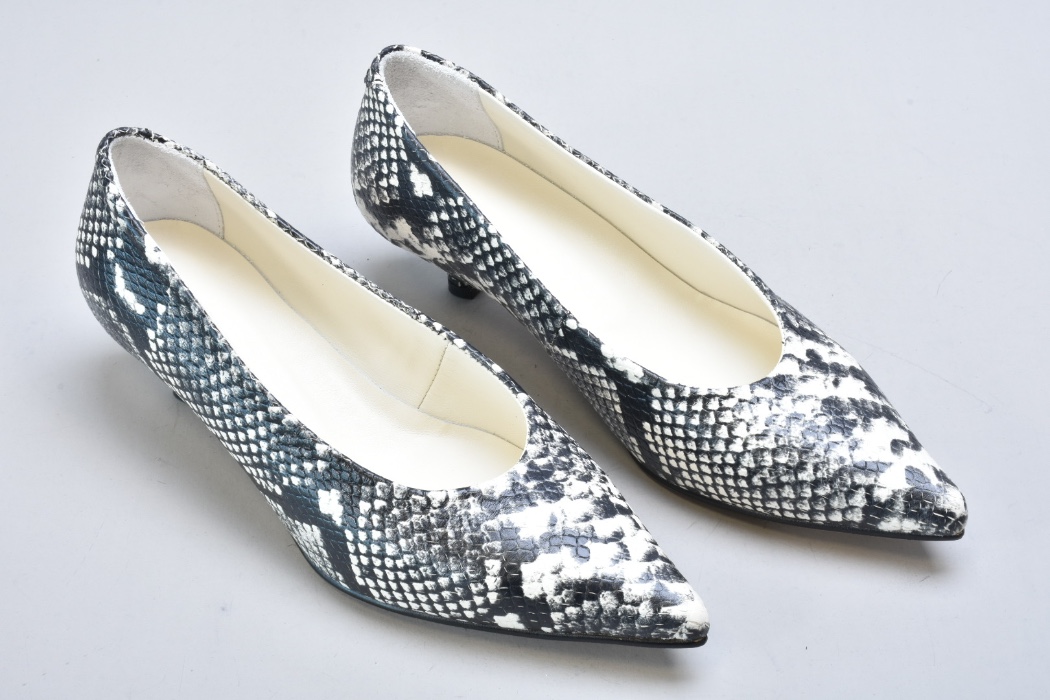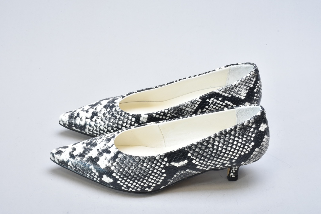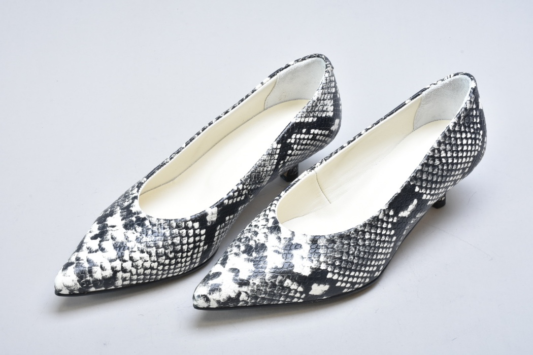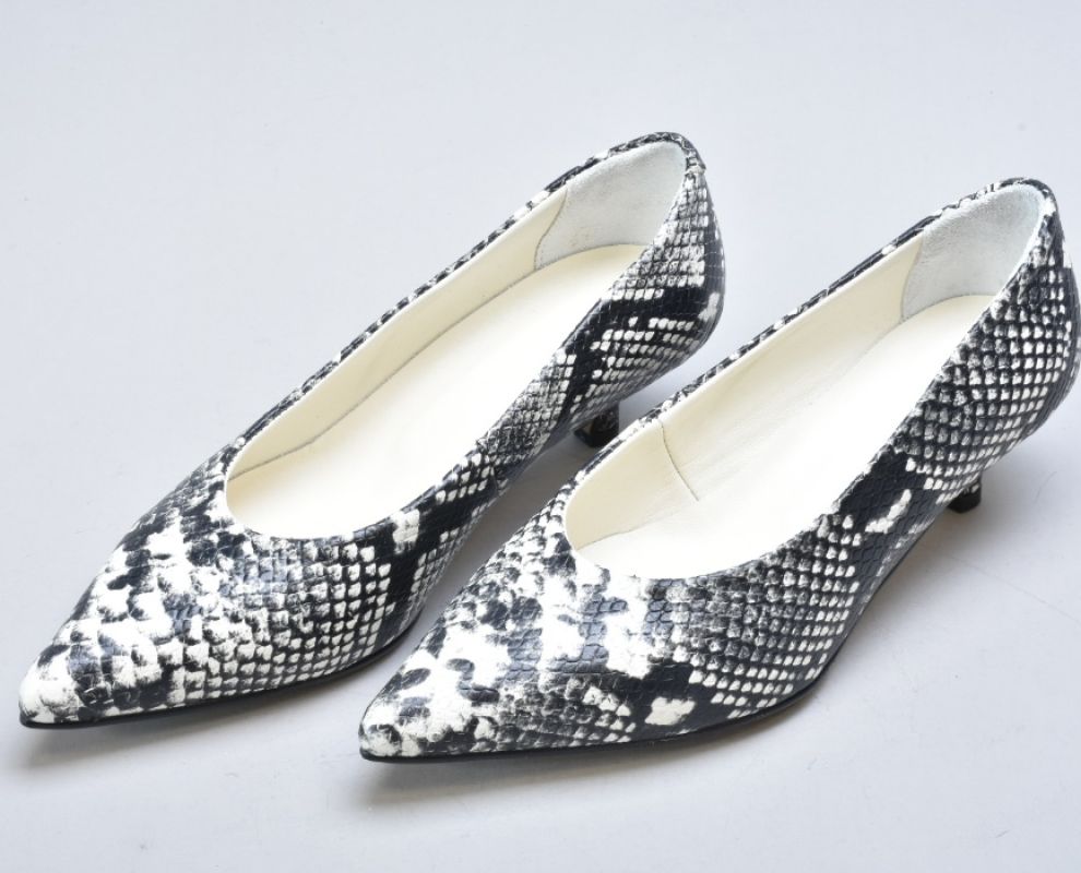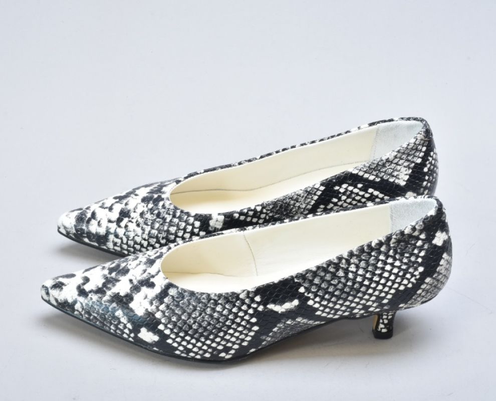 Силует туфель витончений та виразний. Подовжений загострений носок формує аристократичну лінію і візуально подовжує силует. Витончений підбор kitten heelпідкреслює сучасну тенденцію до інтелігентної елегантності — легкої, стриманої, але бездоганно стильової.