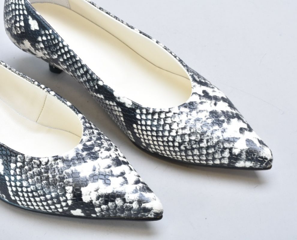 Головна особливість моделі — ексклюзивна фактура під пітона. Контрастна чорно-біла палітра створює глибину малюнка та додає образу модної графічності. Ця текстура давно стала символом високої моди та регулярно з’являється у колекціях світових fashion-домів. Вона виглядає сміливо, дорого і водночас елегантно.