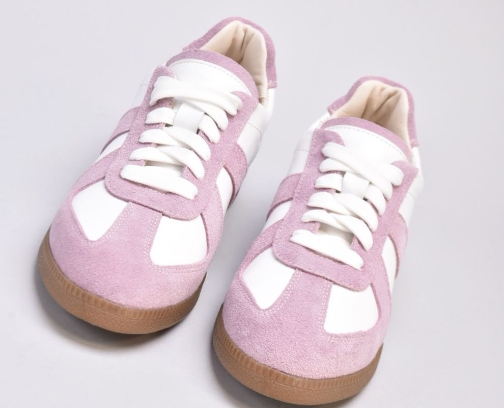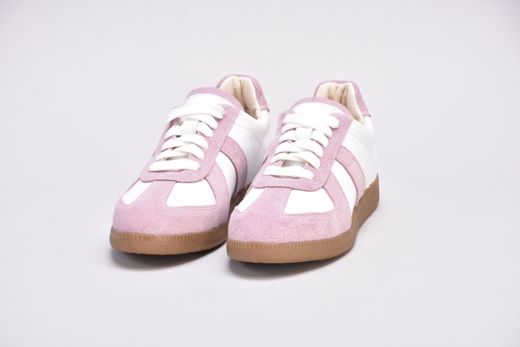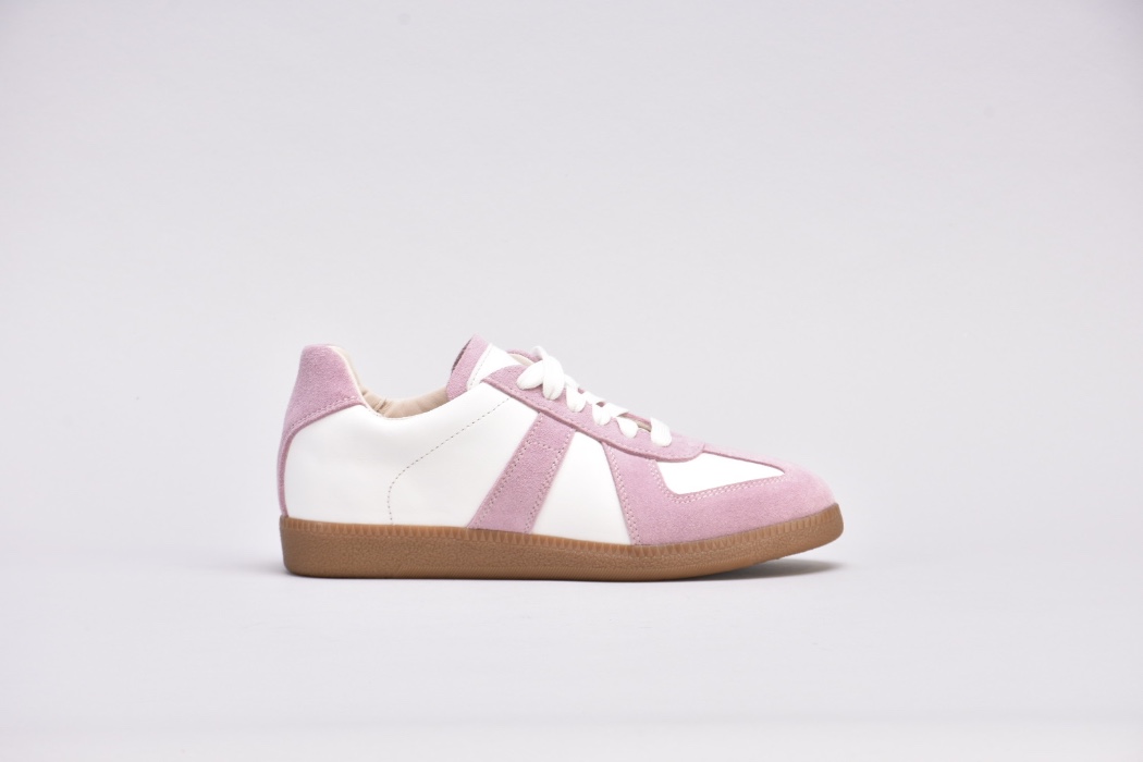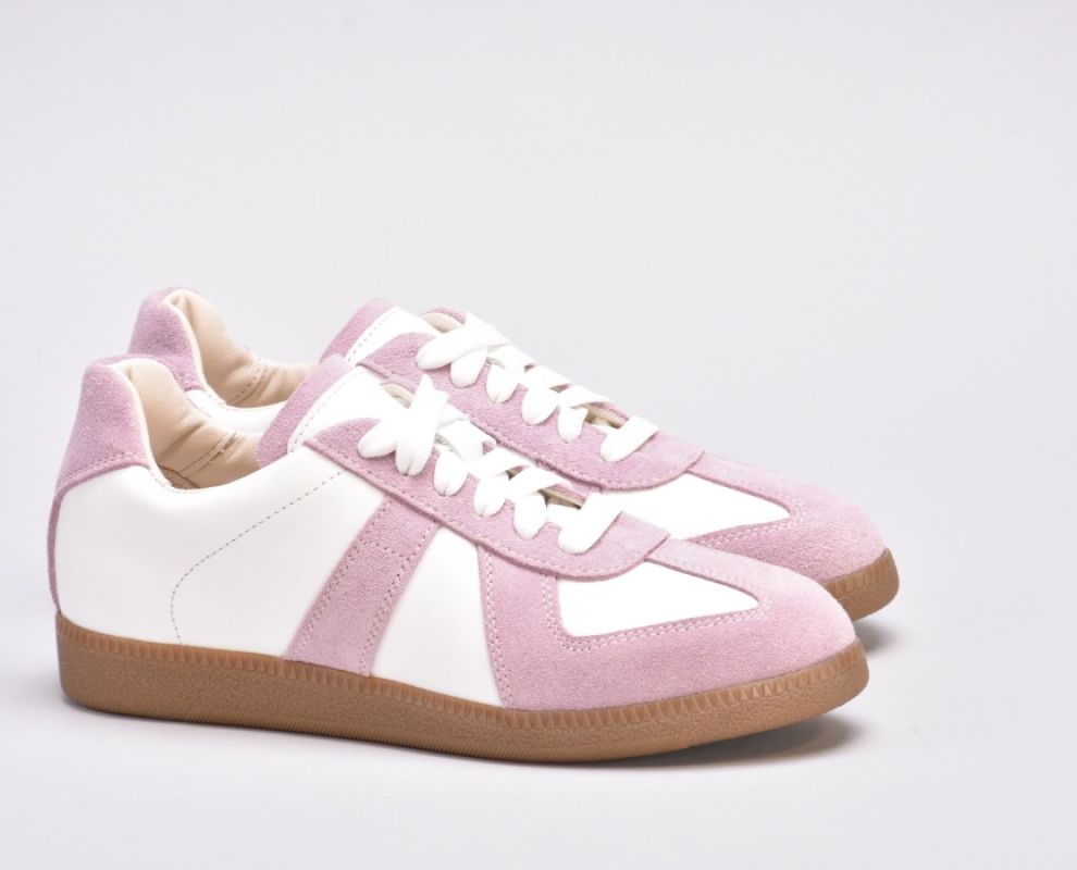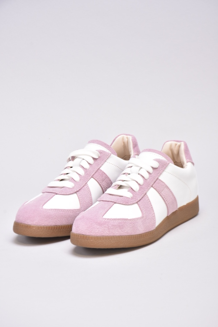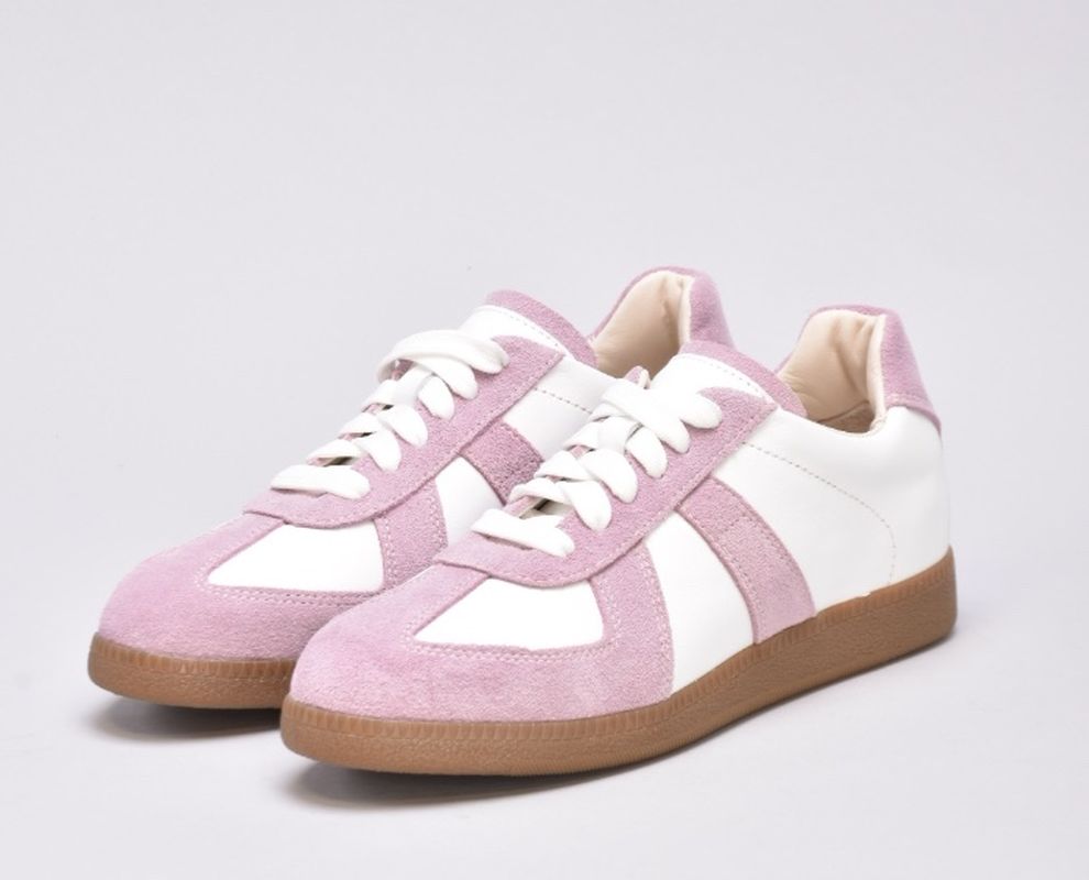 Кеди виконані в поєднанні білої шкіри та натуральної замші милого і романтичного бузково -рожевого кольору.