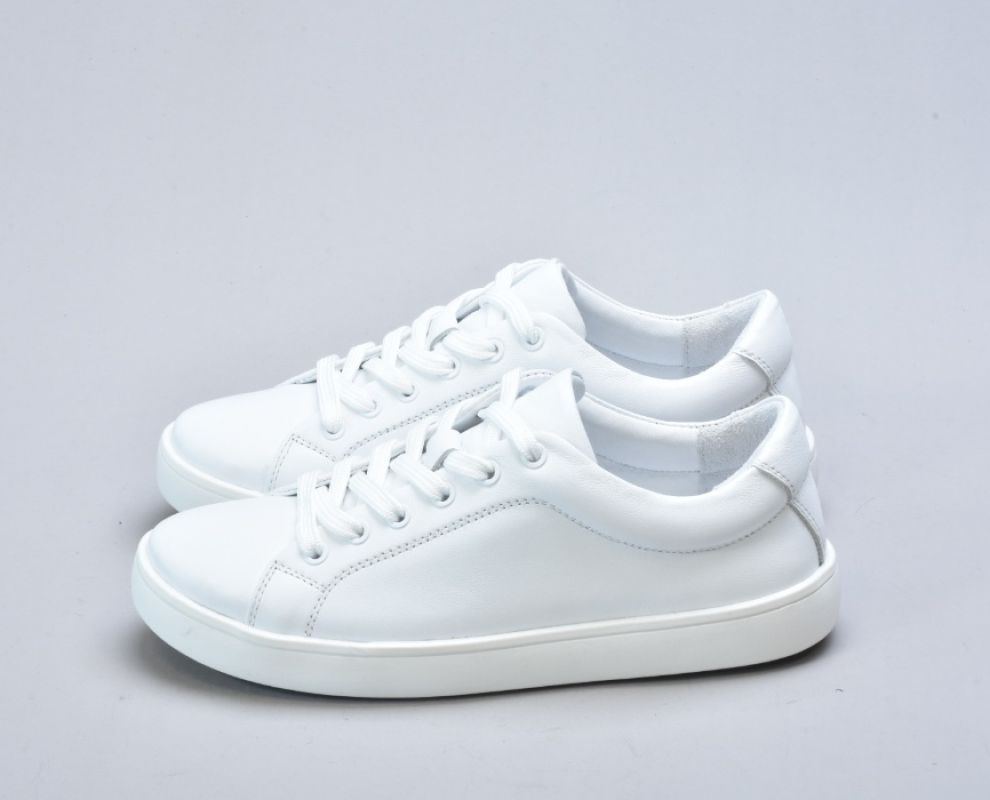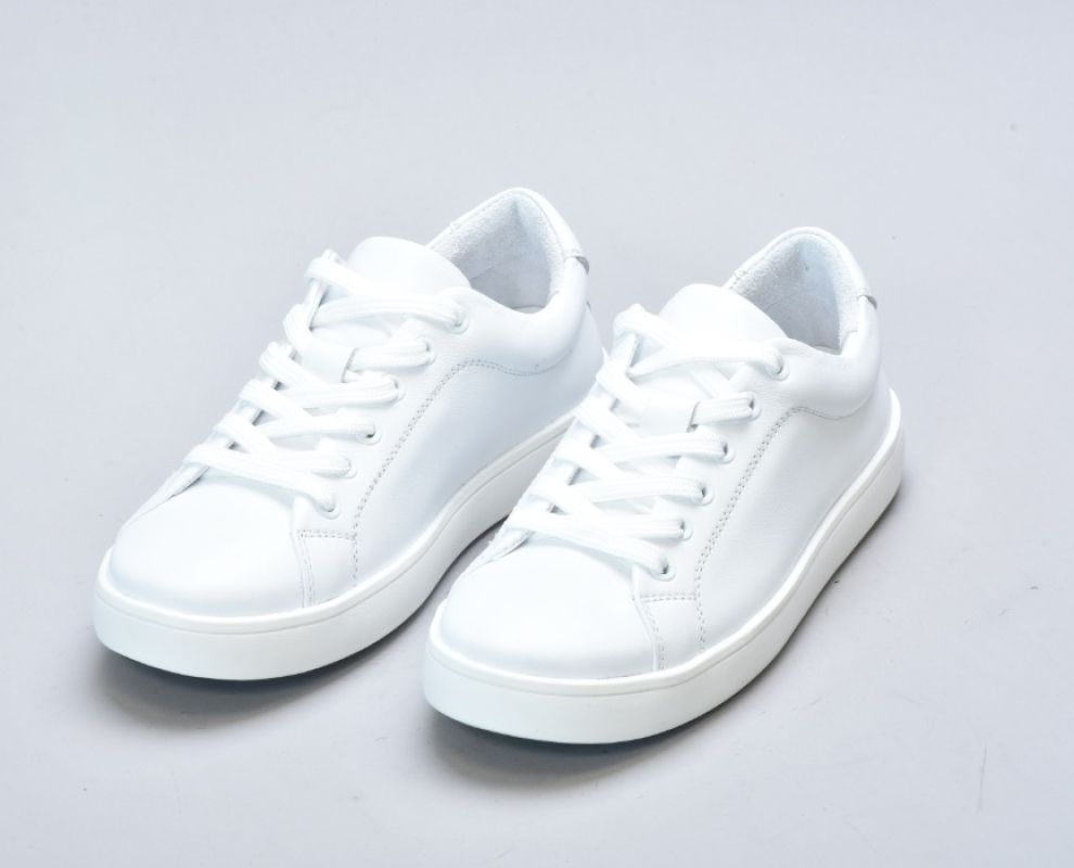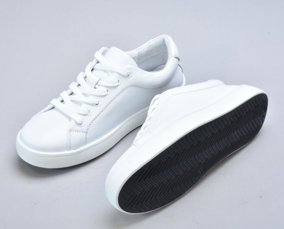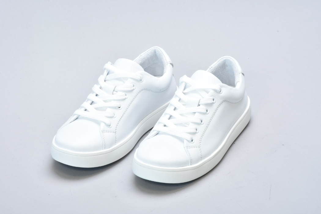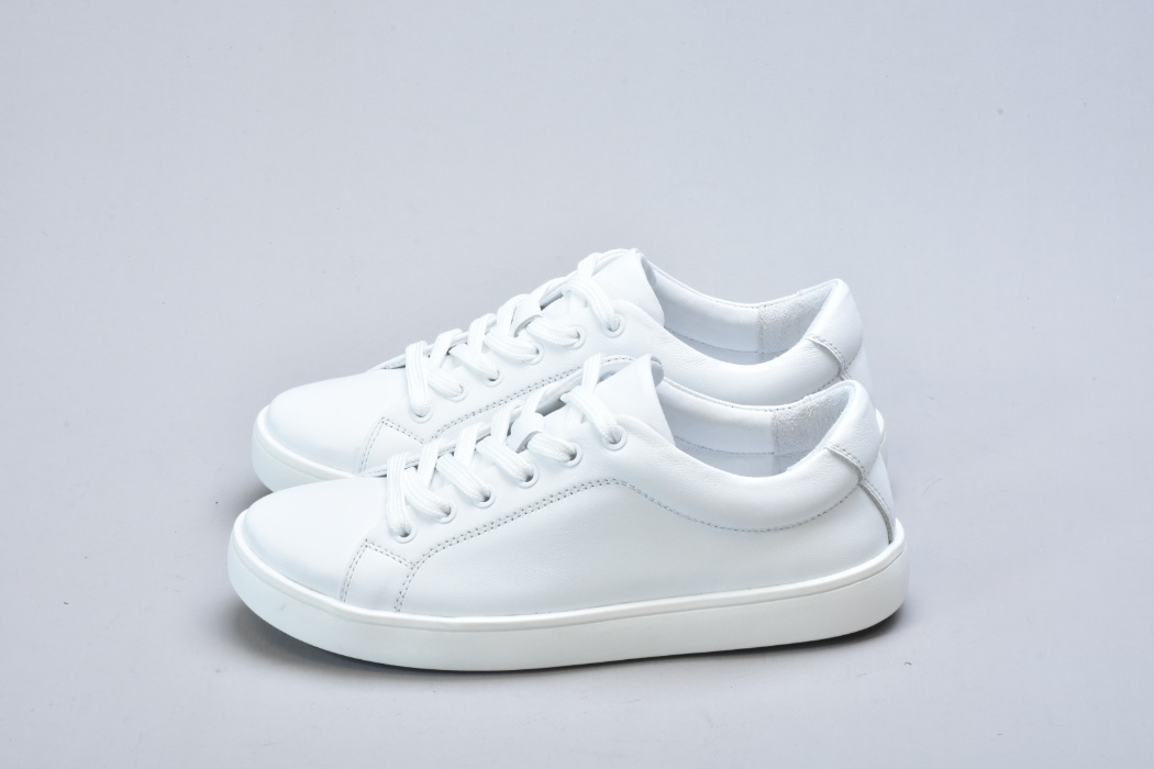 Кеди виконані з натуральної шкіри вищого сорту як зовні, так і всередині. Зовнішня шкіра гладка, рівномірна за фактурою, з м’яким благородним блиском, який підкреслює чистоту білого кольору. Внутрішня частина повністю оздоблена натуральною шкірою, що забезпечує комфортну посадку, приємні тактильні відчуття та оптимальний мікроклімат для стопи навіть при тривалому носінні.