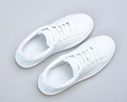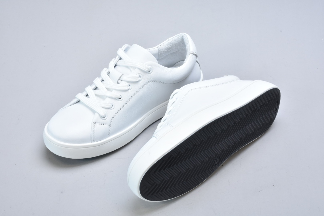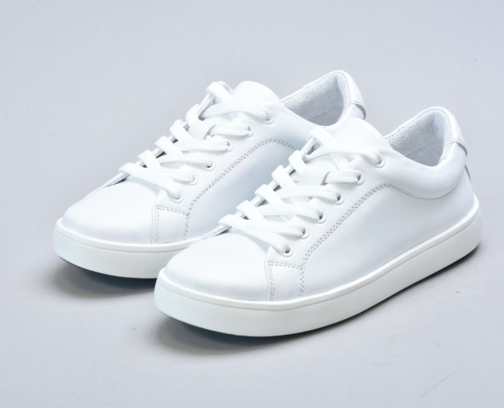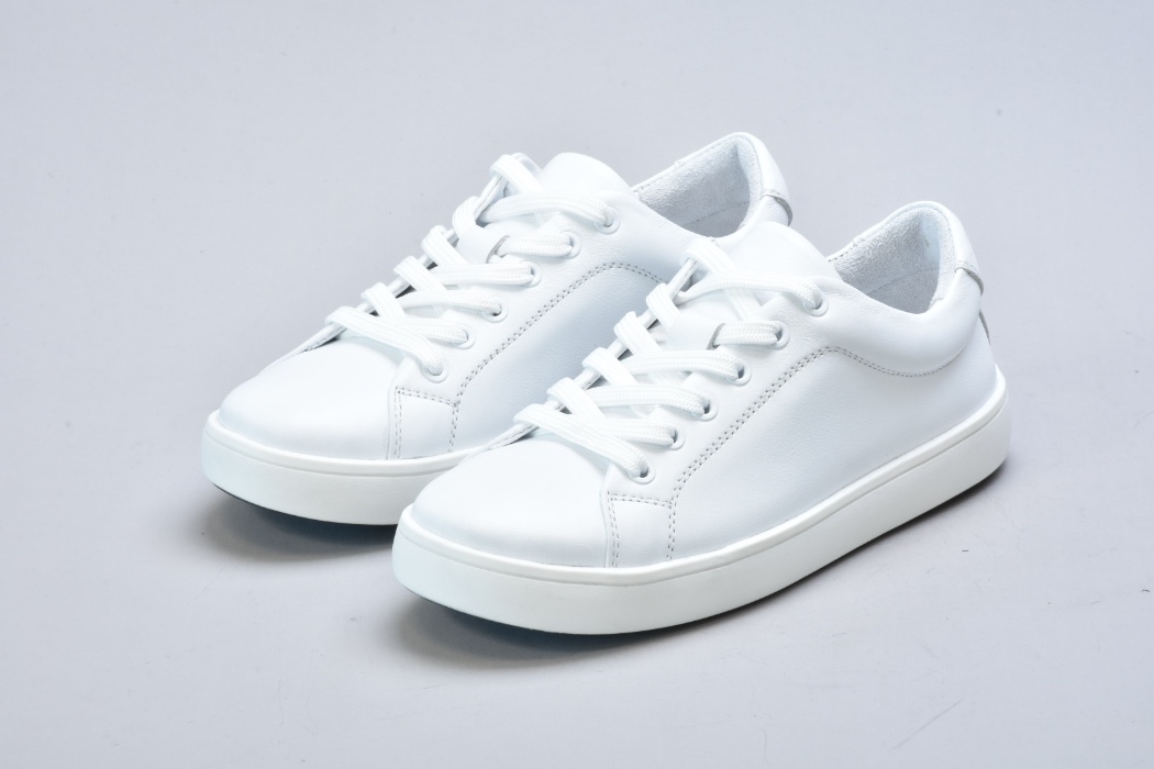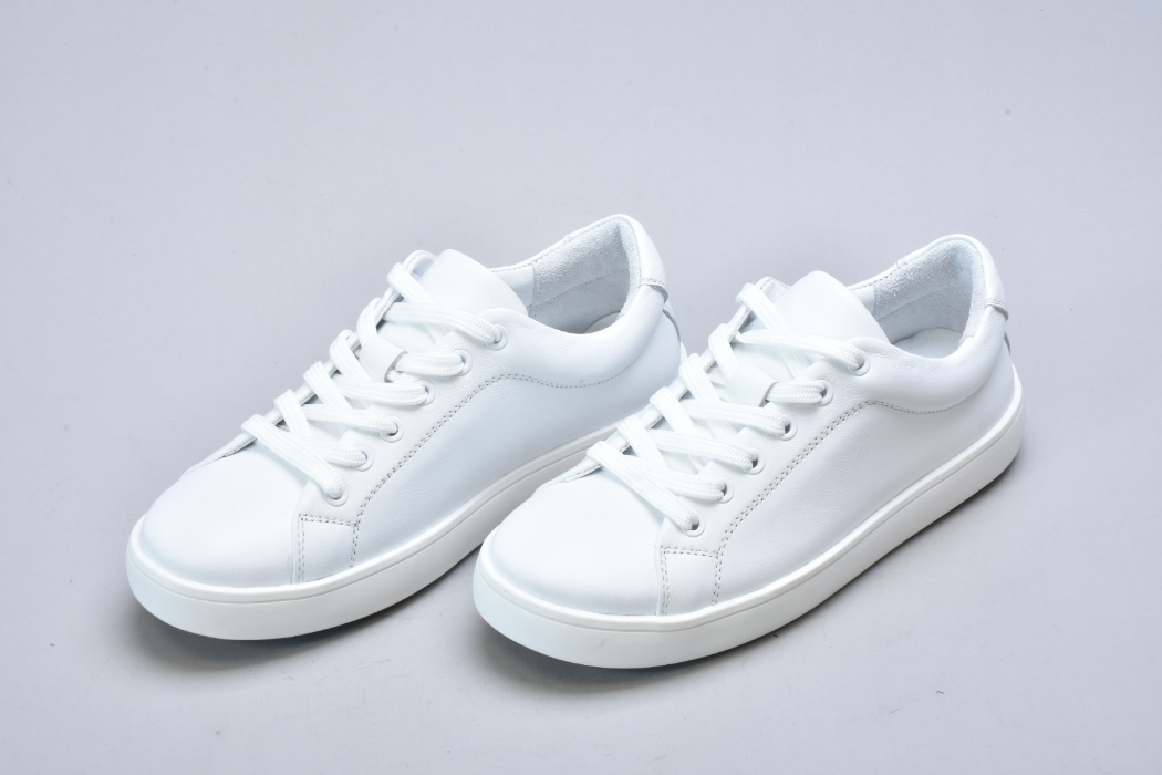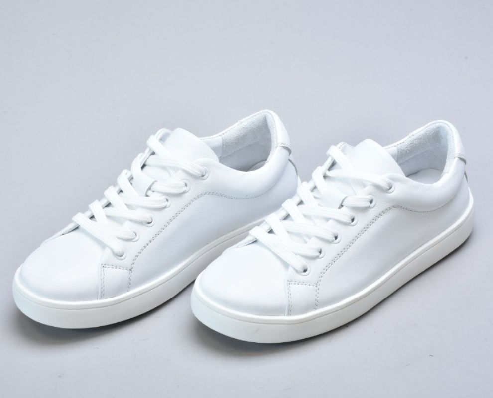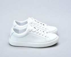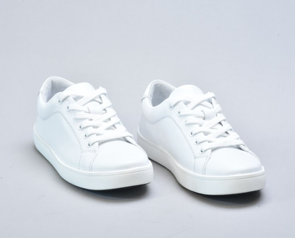 Кеди виконані з натуральної шкіри вищого сорту як зовні, так і всередині. Зовнішня шкіра гладка, рівномірна за фактурою, з м’яким благородним блиском, який підкреслює чистоту білого кольору. Внутрішня частина повністю оздоблена натуральною шкірою, що забезпечує комфортну посадку, приємні тактильні відчуття та оптимальний мікроклімат для стопи навіть при тривалому носінні.